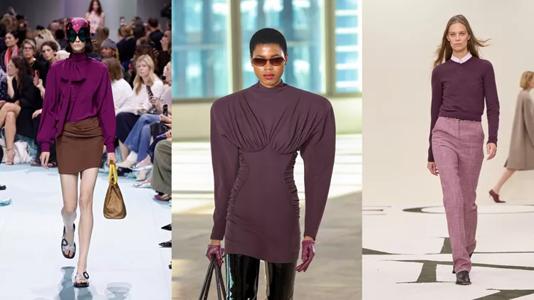 Αν ο Χειμώνας 2024-25 ανήκε στο μπορντό, ο Χειμώνας 2025-26 (φαίνεται ότι) θα ανήκει στο μοβ- και στις διάφορες αποχρώσεις του. Από το καθαρό μοβ του ορατού φάσματος του φωτός, το βιολετί, και το χρώμα της λεβάντας μέχρι τα πιο σκούρα δαμασκινί και μελιτζανί, οι σχεδιαστές εκμεταλλεύτηκαν την ποικιλία των αποχρώσεων του μοβ για να δείξουν σε ποιο χρώμα ποντάρουν ως το επόμενο μεγάλο color trend. Το μοβ, ιδίως στην εκδοχή του plum ή του maroon/burgundy, θυμίζουν αρκετά την περσινή τάση του μπορντό, κάνοντας τη μετάβαση από το ένα χρώμα στο άλλο πιο ομαλή.