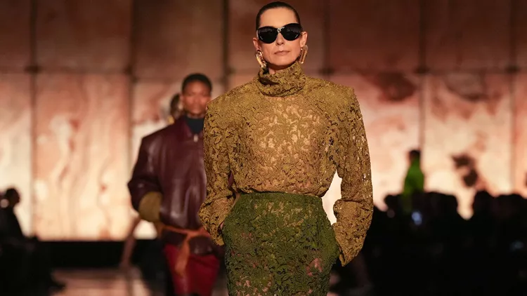 Αυτή η σεζόν σηματοδότησε το ντεμπούτο νέων σχεδιαστών σε τέσσερις σημαντικούς οίκους: Calvin Klein (Veronica Leoni), Tom Ford (Haider Ackermann), Givenchy (Sarah Burton), Dries Van Noten (Julian Klausner). Ο Saint Laurent παρουσιάζει τις συλλογές του στη "σκιά" του πιο αναγνωρίσιμου ορόσημου της Γαλλίας από το 2017, πραγματοποιώντας τα shows του τους ψυχρότερους μήνες σε έναν μεγάλο λυόμενο χώρο αντί για υπαίθριο σκηνικό. Ωστόσο, αυτή τη σεζόν έκλεισε όχι μόνο την Εβδομάδα Μόδας του Παρισιού, αλλά και ολόκληρη τη σεζόν των φθινοπωρινών shows του 2025. Το σκηνικό ήταν ένας οβάλ χώρος, επενδυμένος με φωτιζόμενα πάνελ από πορτοκαλί όνυχα, σχεδόν σαν να βρισκόσουν μέσα σε μια τεράστια κολοκύθα του Halloween. Η εκθαμβωτική πολυτέλεια του χώρου ταίριαζε απόλυτα με το πνεύμα της σεζόν, η οποία σηματοδότησε την απόρριψη του "quiet luxury" υπέρ της επιστροφής στον μαξιμαλισμό. Ή, όπως λέγεται σήμερα, "boom boom", ένας όρος που εισήγαγε ο Αμερικανός αναλυτής τάσεων Sean Monahan, γνωστός και για τους όρους "normcore" και "vibe shift", σε ανάρτησή του στο newsletter του, 8Ball Substack.