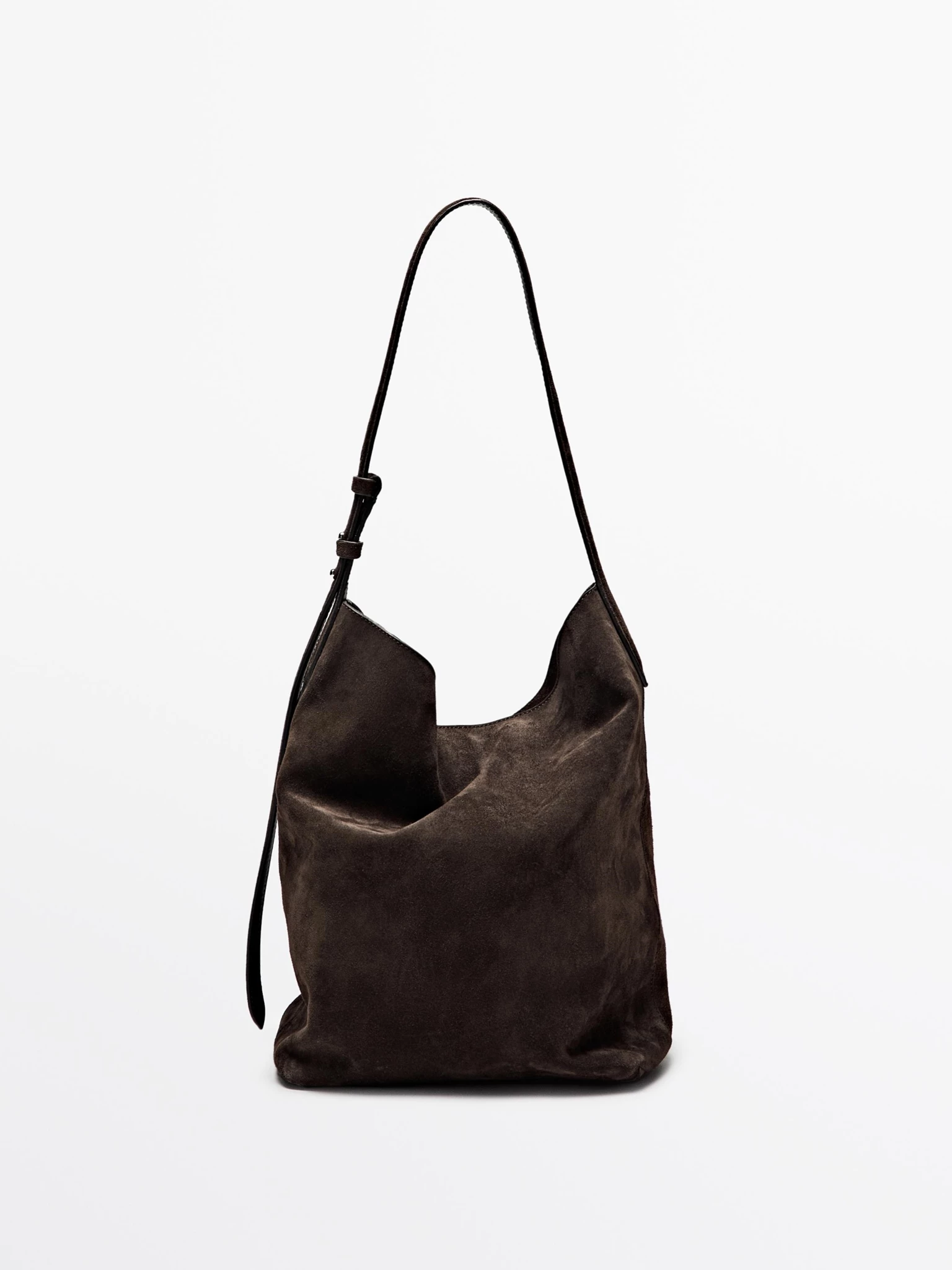 Τσάντα bucket από χοντρό σουέντ δέρμα, Massimo Dutti.