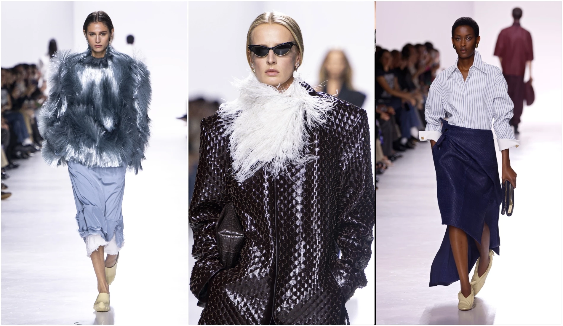 Teddy coats που θυμίζουν μπουρνούζια, παλτό που μοιάζουν με ρόμπες, κορσέ λεπτομέρειες σε τοπ και φορέματα οι οποίες παραπέμπουν στα εσώρουχα, φορέματα που αντιγράφουν τις γραμμές και το ύφος των τουνίκ και των νυχτικών, cozy πλεκτά και παντελόνια άνετα σε γραμμή ή απαλά σε υφή σαν αυτά που συναντάμε στις homewear συλλογές. Το συναίσθημα της "οικειότητας" και του "dress for yourself" ενισχύεται από τα αξεσουάρ: τα τουρπάνια μοιάζουν με πετσέτες τυλιγμένες γύρω από το κεφάλι, τα παπούτσια παραπέμπουν σε παντόφλες, ενώ τα νεσεσέρ παίρνουν τη θέση των clutches.