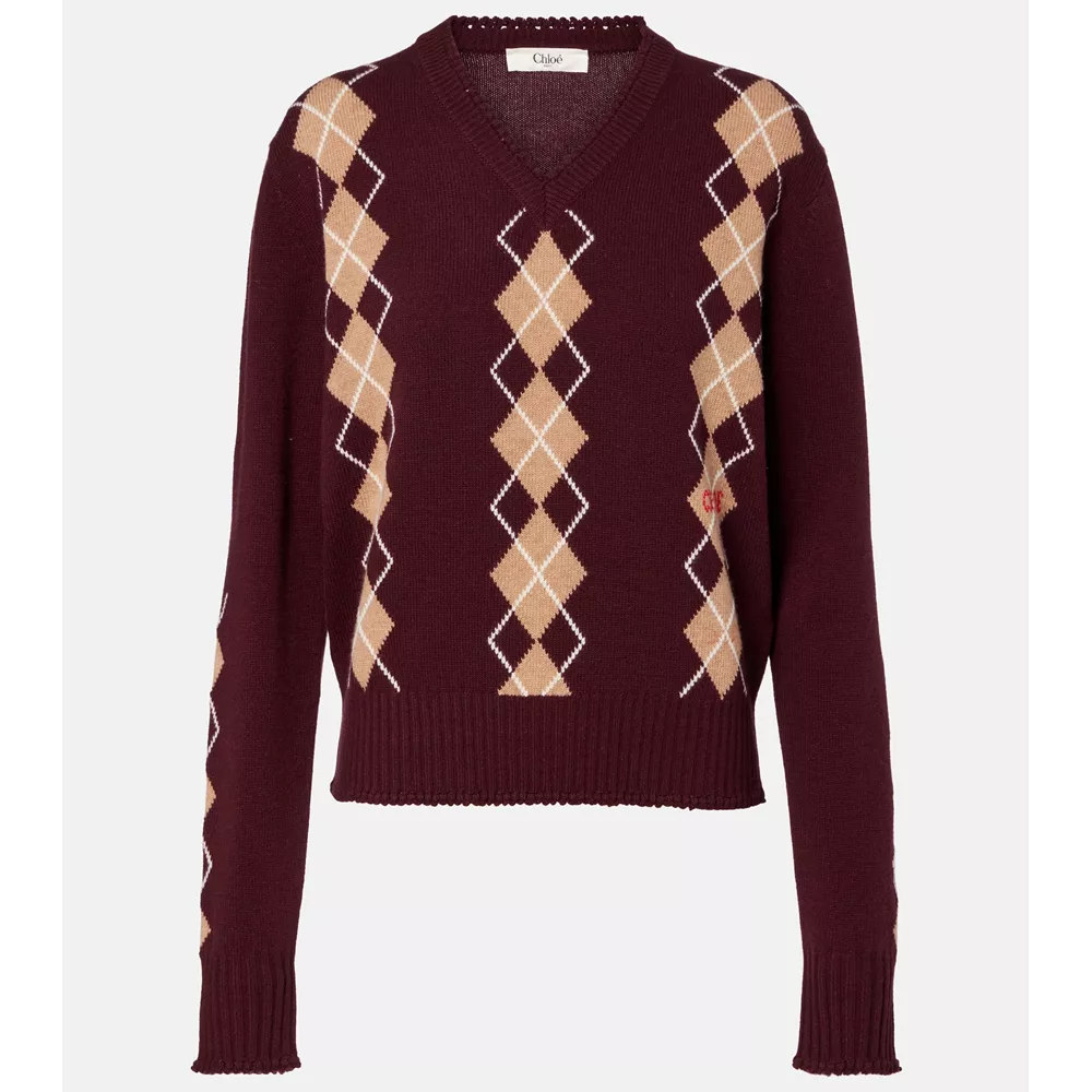 Πουλόβερ από μαλλί και κασμίρ με μοτίβο argyle, Chloé.