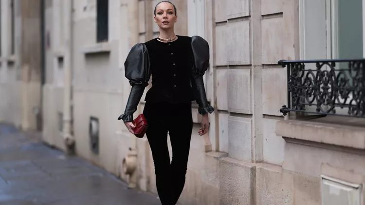 Το βελούδο είναι μια υφή που αποπνέει πολυτέλεια και ταιριάζει απόλυτα στο festive ντύσιμο. Εμείς εντοπίσαμε ένα βελούδινο παντελόνι σε σκούρο πράσινο χρώμα στη συλλογή Saint Laurent και σας προτείνουμε να το φορέσετε με velvet blazer στην ίδια απόχρωση για να δημιουργήσετε ένα κομψό γιορτινό σύνολο με κοστούμι. Με τον ίδιο τρόπο μπορείτε να φορέσετε ένα σατέν παντελόνι, όπως αυτό της συλλογή Simkhai, δηλαδή με σατέν blazer. Αυτή τη φορά, ωστόσο, επιλέξτε μία άλλη δημοφιλή απόχρωση της γιορτινής σεζόν: το κόκκινο (ή το μπορντό).