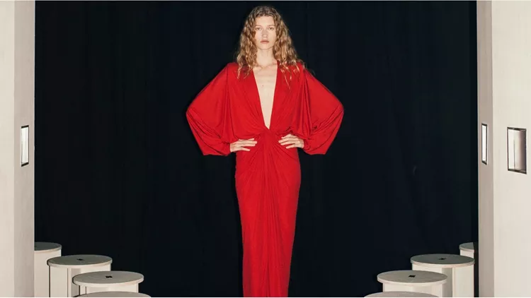 Το show άνοιξε μ' ένα λιτό ντραπέ μάξι φόρεμα στο χρώμα που έγινε signature του οίκου, το Valentino Red. Άγνωστο αν αυτό το look δημιουργήθηκε πριν ή μετά τον θάνατο του ιδρυτή, ωστόσο η τοποθέτησή του στην έναρξη της πασαρέλες ήταν ξεκάθαρα για να τιμήσει τον ιδρυτή και αυτό που τον ξεχώρισε ως couturier: την αγάπη του για τις γυναίκες και τη δύναμη που έβλεπε σ' αυτές.