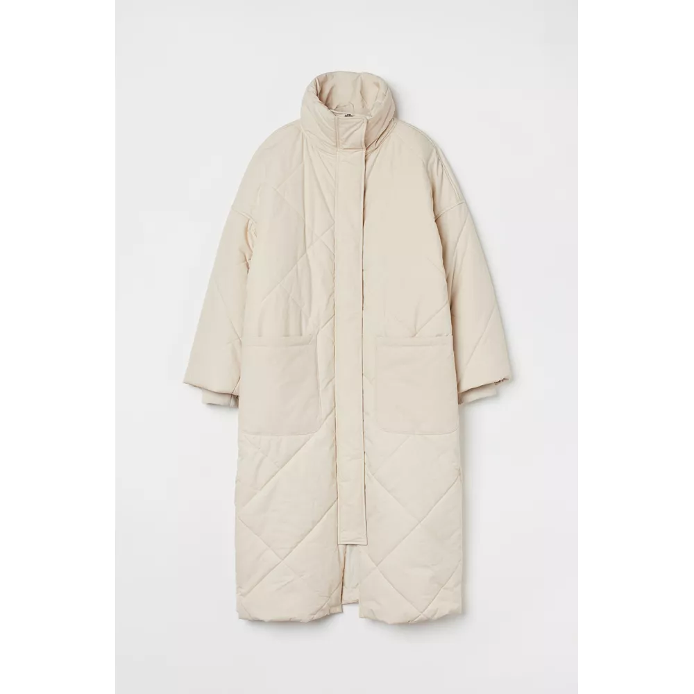 Καπιτονέ παλτό ανοιχτό μπεζ, H&M.