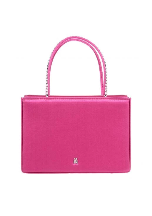 Σατέν top handle τσάντα φούξια Amina Muaddi, KALOGIROU.