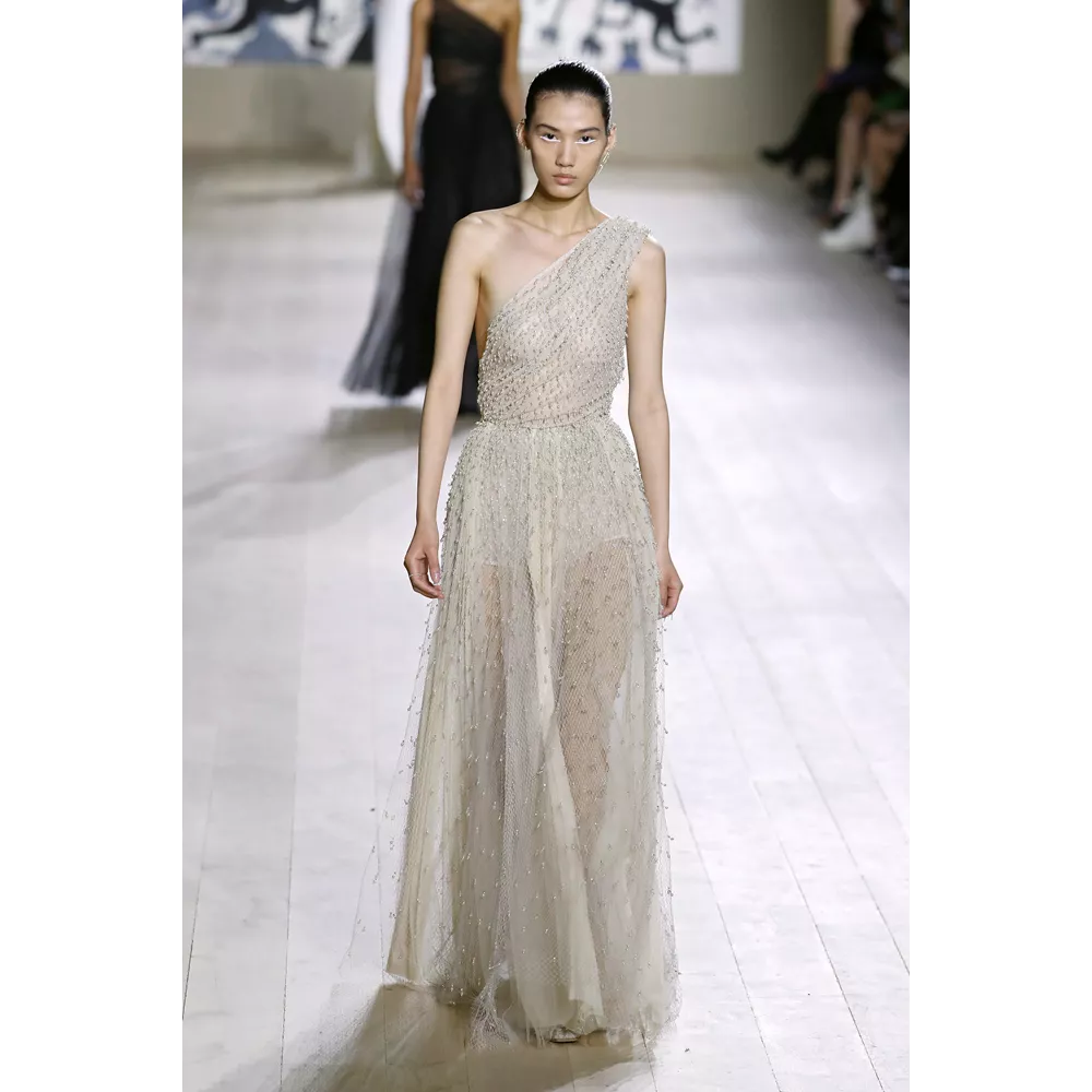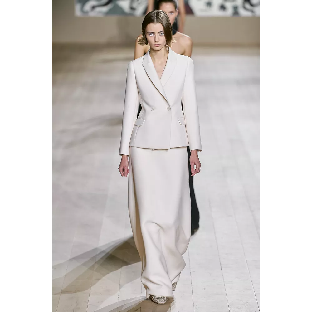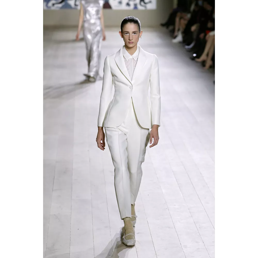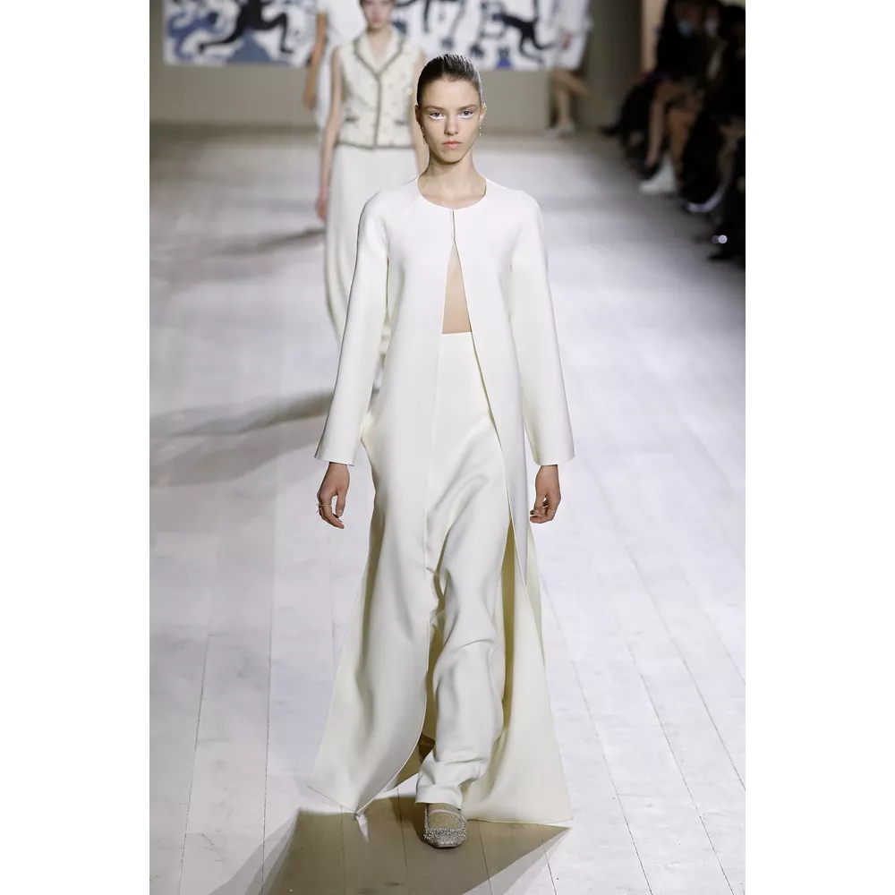 Η συλλογή Dior Couture SS22 εστιάζει σαφώς και ξεκάθαρα στις καθαρές γραμμές, τη μίνιμαλ αισθητική, τη διακριτική λάμψη. Από τη χρωματική παλέτα που δεν παρεκκλίνει σχεδόν καθόλου από τις ουδέτερες αποχρώσεις, με κυρίαρχα το λευκό και το μαύρο, μέχρι το αψεγάδιαστο tailoring, τις διαχρονικές σιλουέτες και τα δεξιοτεχνικά κεντήματα στη διακόσμηση των ρούχων, η πρόταση του οίκου επαναφέρει στον διάλογο της μόδας τη ντελικάτη φινέτσα και το εκλεπτυσμένο στιλ.