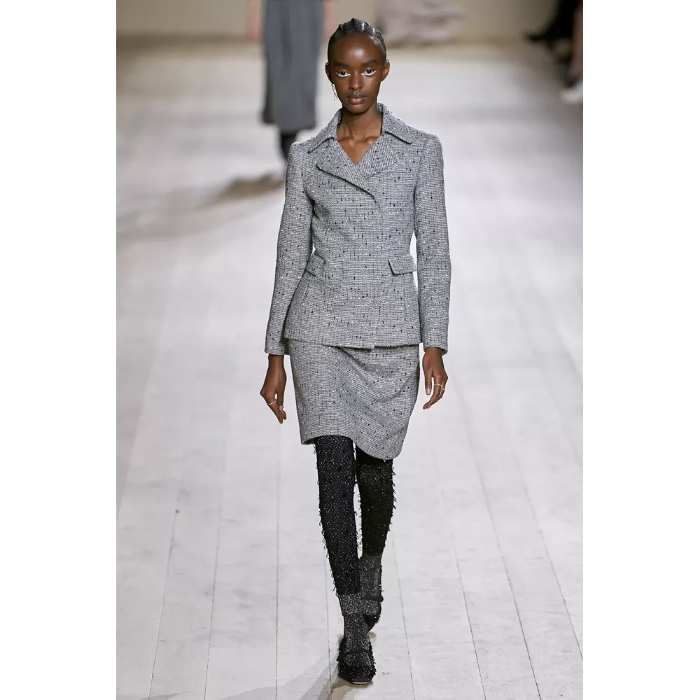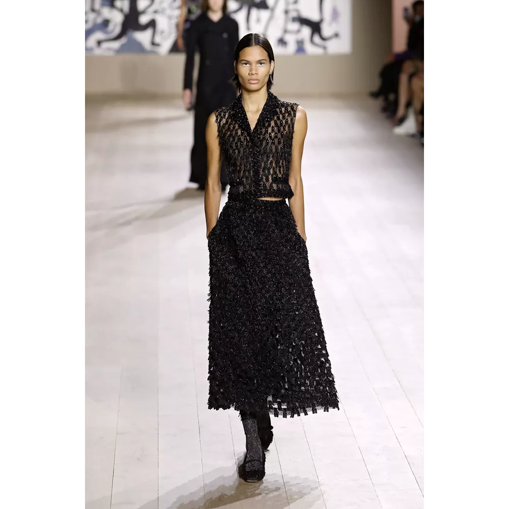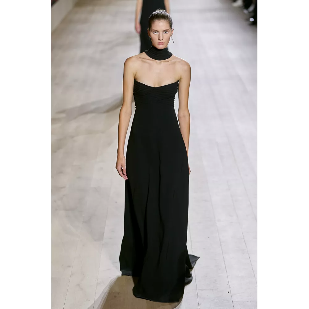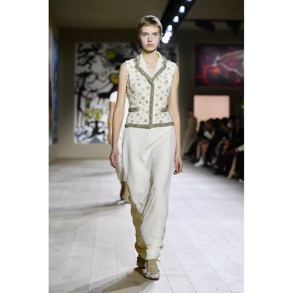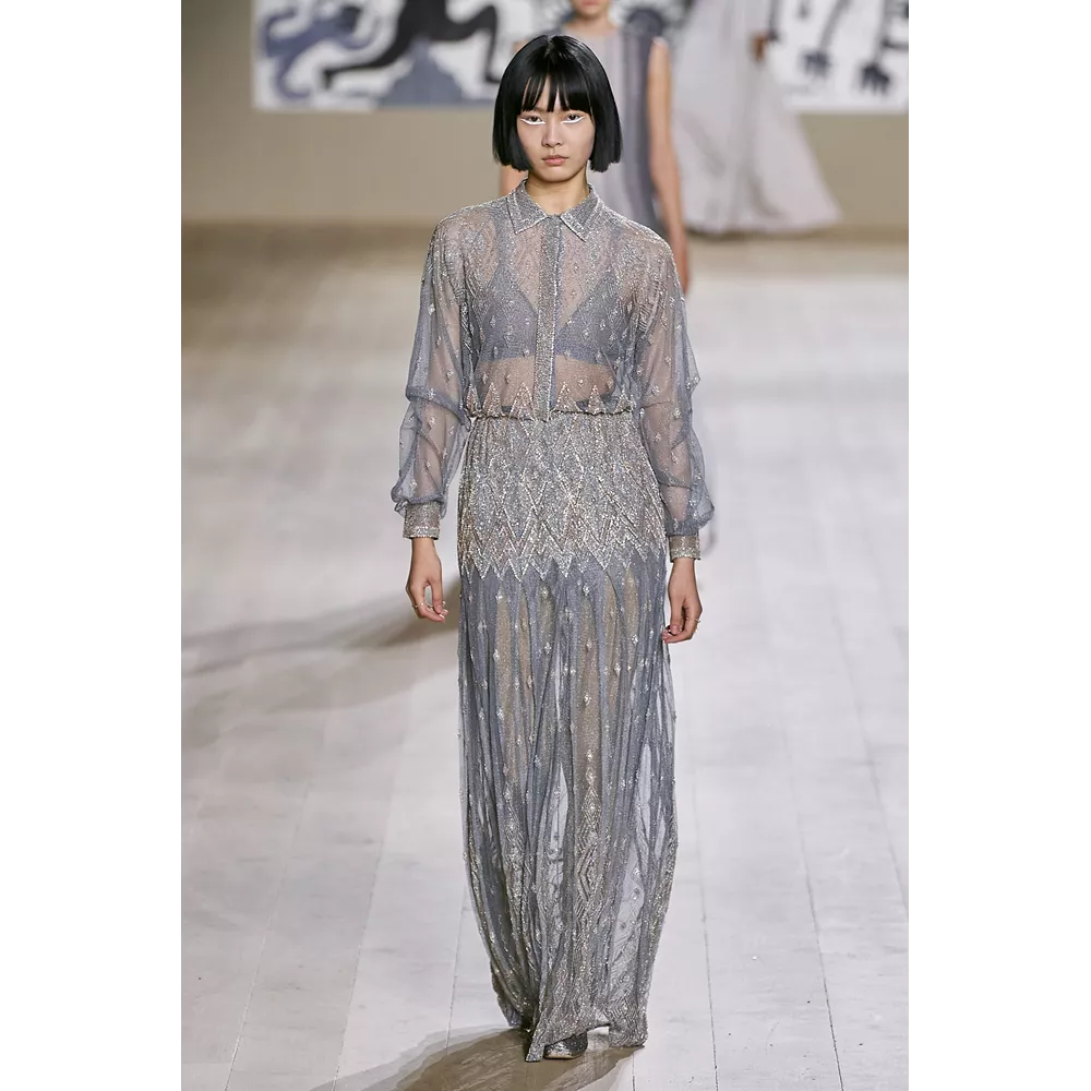 Η συλλογή Dior Couture SS22 εστιάζει σαφώς και ξεκάθαρα στις καθαρές γραμμές, τη μίνιμαλ αισθητική, τη διακριτική λάμψη. Από τη χρωματική παλέτα που δεν παρεκκλίνει σχεδόν καθόλου από τις ουδέτερες αποχρώσεις, με κυρίαρχα το λευκό και το μαύρο, μέχρι το αψεγάδιαστο tailoring, τις διαχρονικές σιλουέτες και τα δεξιοτεχνικά κεντήματα στη διακόσμηση των ρούχων, η πρόταση του οίκου επαναφέρει στον διάλογο της μόδας τη ντελικάτη φινέτσα και το εκλεπτυσμένο στιλ.