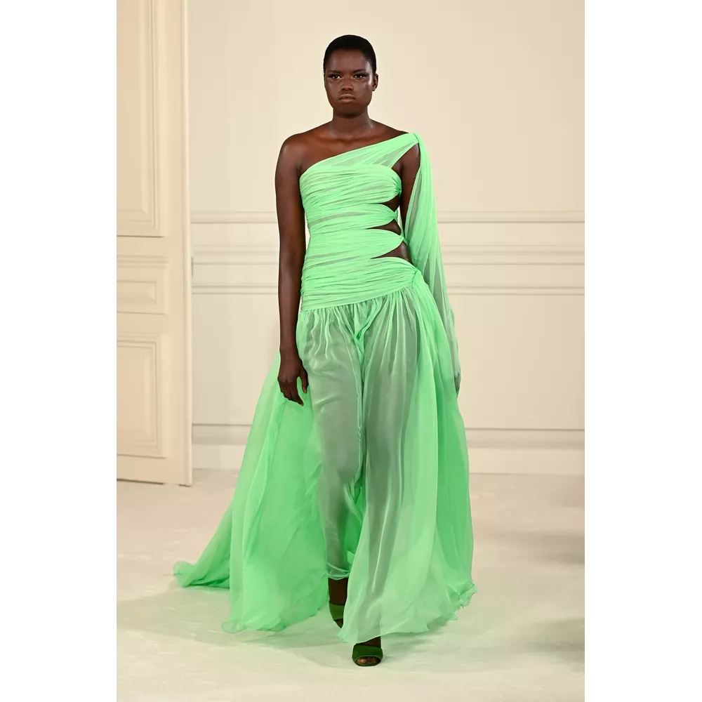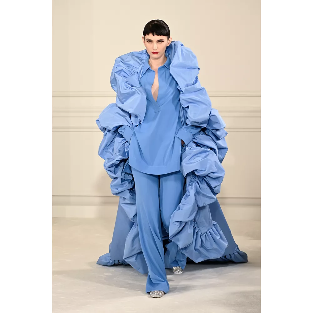 Σε μια εποχή που τα luxury brands έχουν ανεβάσει ταχύτητες προκειμένου να προλάβουν να επιβιβαστούν στο τρένο της εικονικής πραγματικότητας – και να στήσουν τις ψηφιακές τους μπουτίκ, ο οίκος Valentino γυρίζει το ρολόι του χρόνου προς τα πίσω και μας ταξιδεύει στην εποχή των παριζιάνικων salon de couture. Μ' ένα show που πραγματοποιήθηκε στο απαλλαγμένο απ' οποιαδήποτε διακόσμηση showroom του οίκου στην Place Vendôme, με τους καλεσμένους στο front row ντυμένους στα μαύρα (καθ' υπόδειξη dress code στην πρόσκληση) και με τη μαγευτική φωνή του Αnohni (του συγκροτήματος Antony and the Johnsons) να πλαισιώνει την επίδειξη, ο καλλιτεχνικός διευθυντής Pierpaolo Piccioli και ο οίκος Valentino αποκάλυψαν την haute couture συλλογή τους για την Άνοιξη – Καλοκαίρι 2022 που έχει τον τίτλο "The Anatomy of Couture", η οποία αποτίνει φόρο τιμής στις δημιουργίες και την αυθεντική εμπειρία της Υψηλής Ραπτικής.