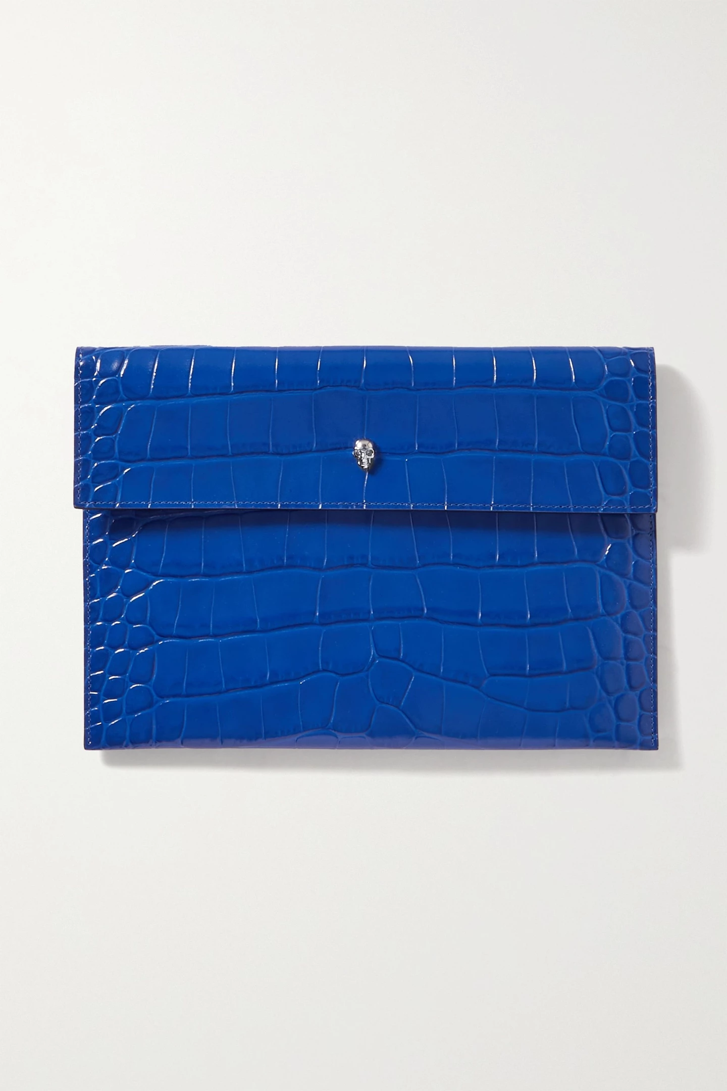 Croc-effect δερμάτινος φάκελος σε βαθύ μπλε, Alexander McQueen.