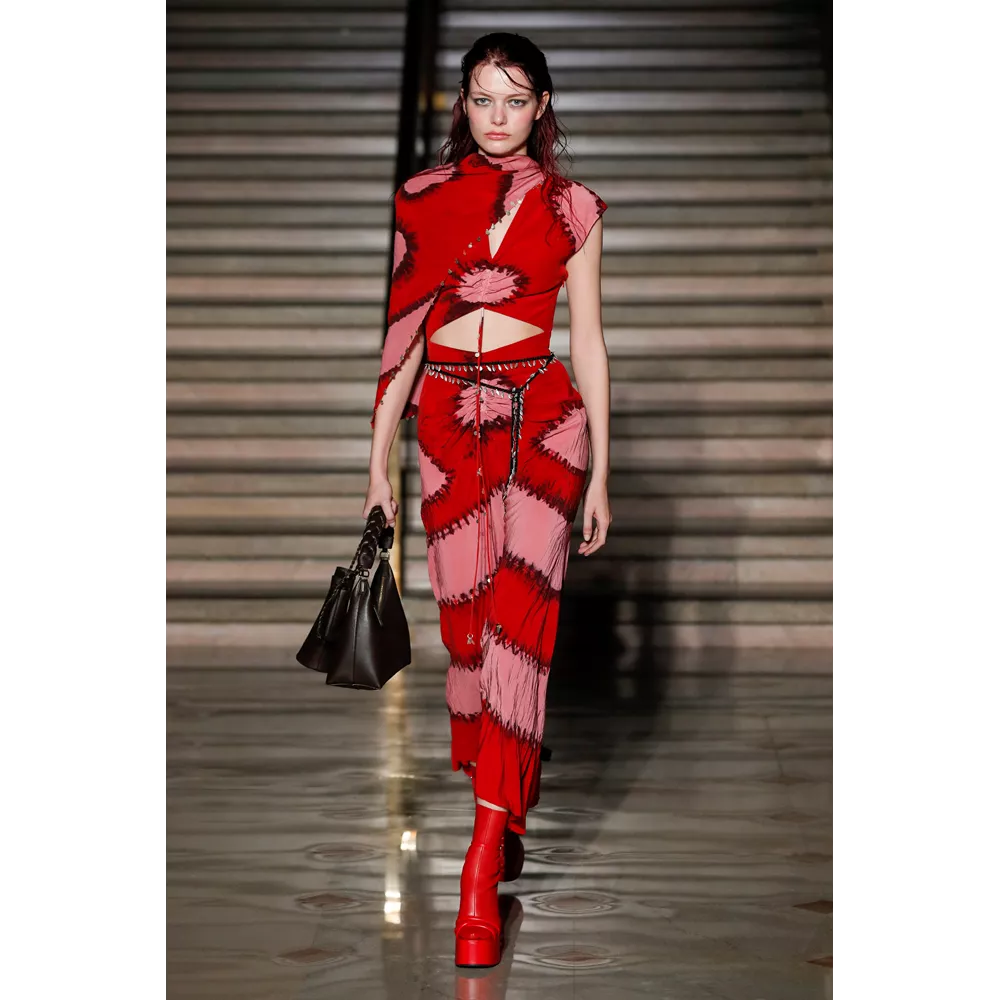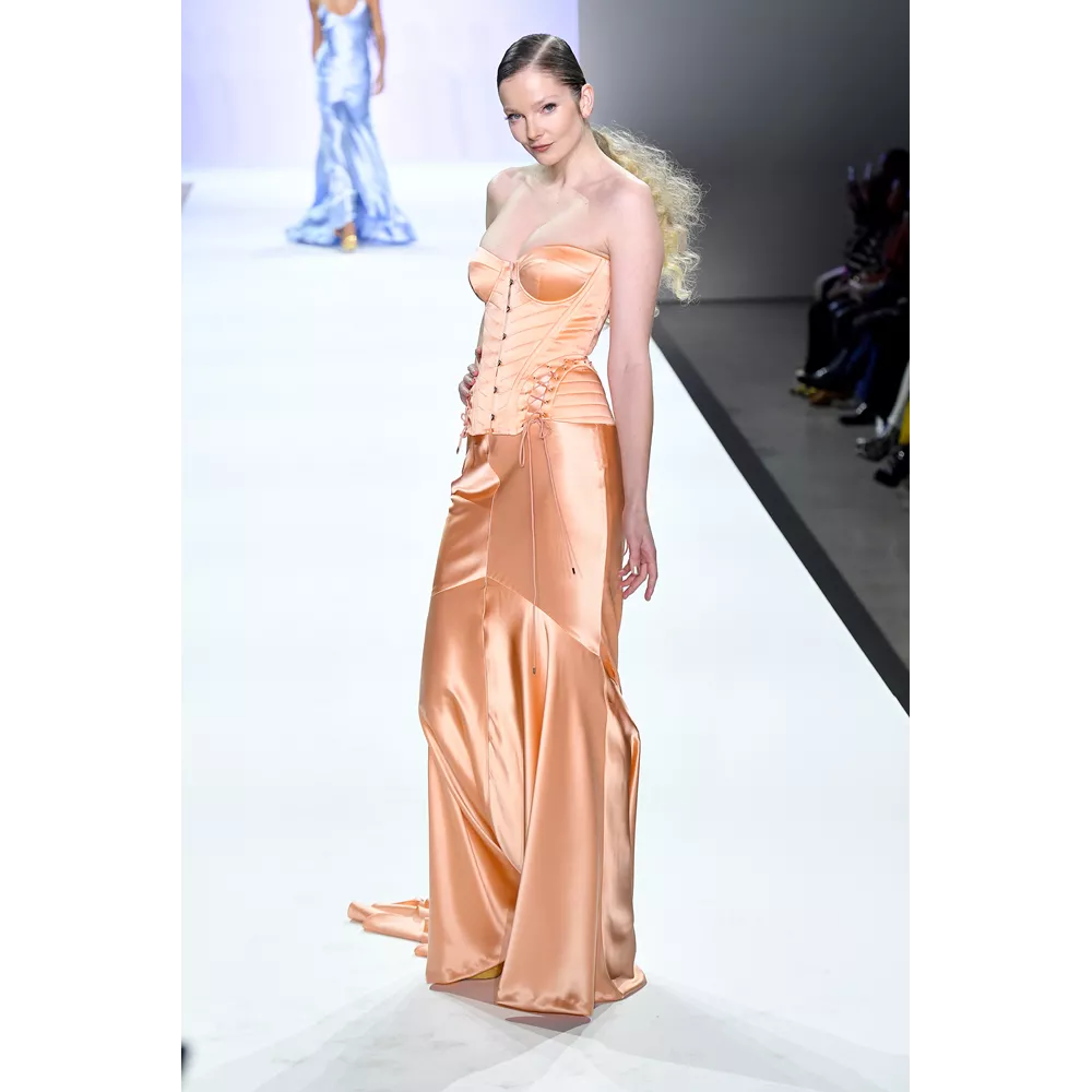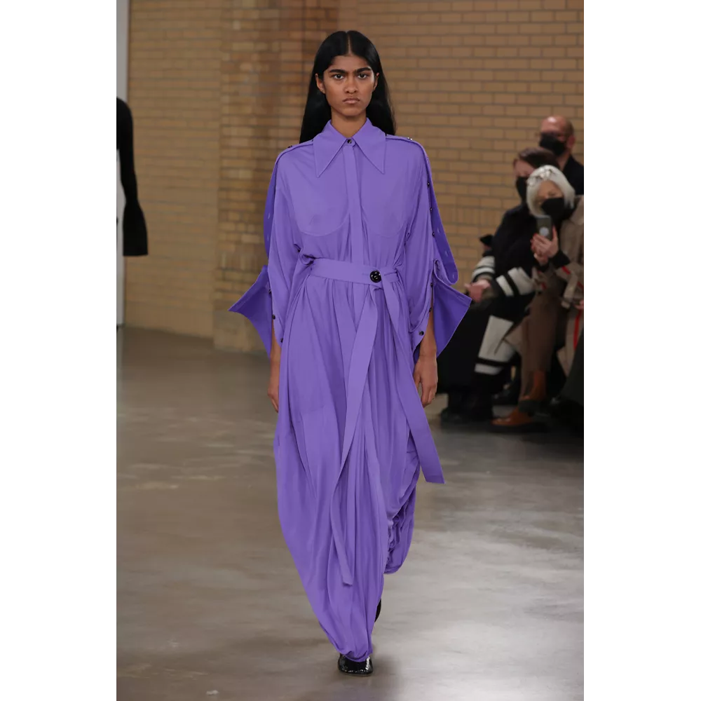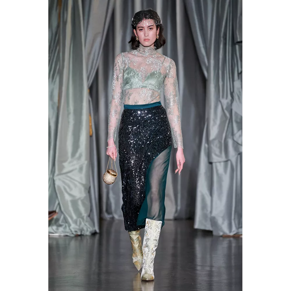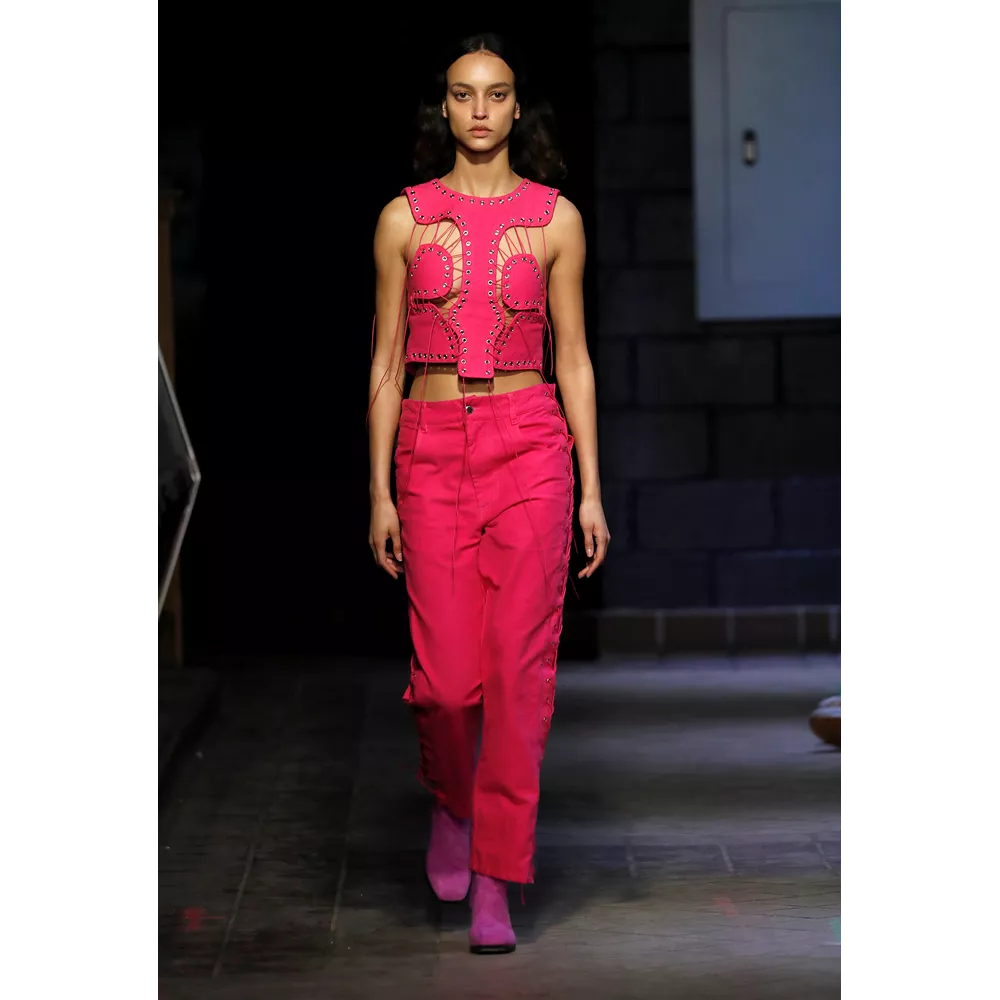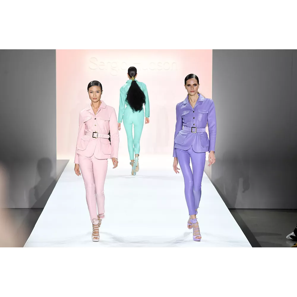 -Η συλλογή του Sergio Hudson που εμπνέεται από τη μόδα των '80s και των πρώιμων '90s τις σιλουέτες της οποίας αναβιώνει μέσα από μία παλέτα ζωντανών χρωμάτων (μοβ, πράσινο, κίτρινο, ροδακινί, ροζ) που κάνει τις δημιουργίες του να μοιάζουν με λαχταριστά ζαχαρωτά.