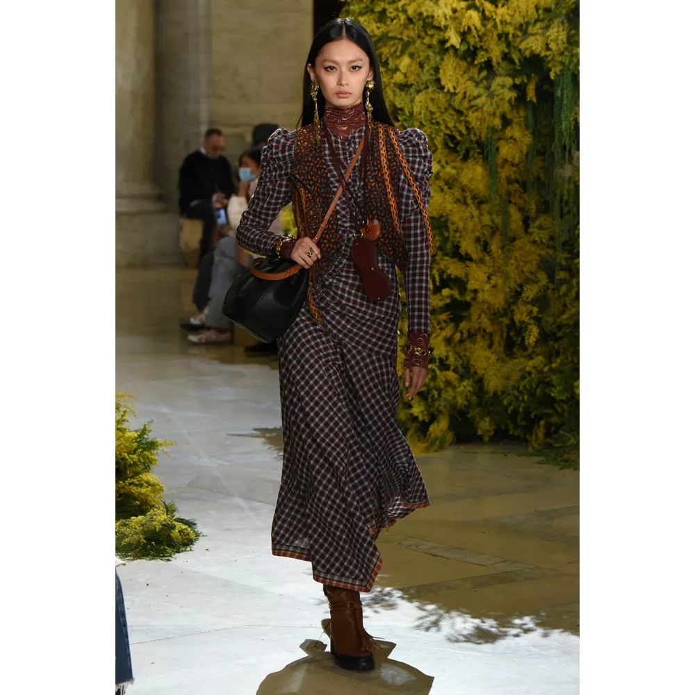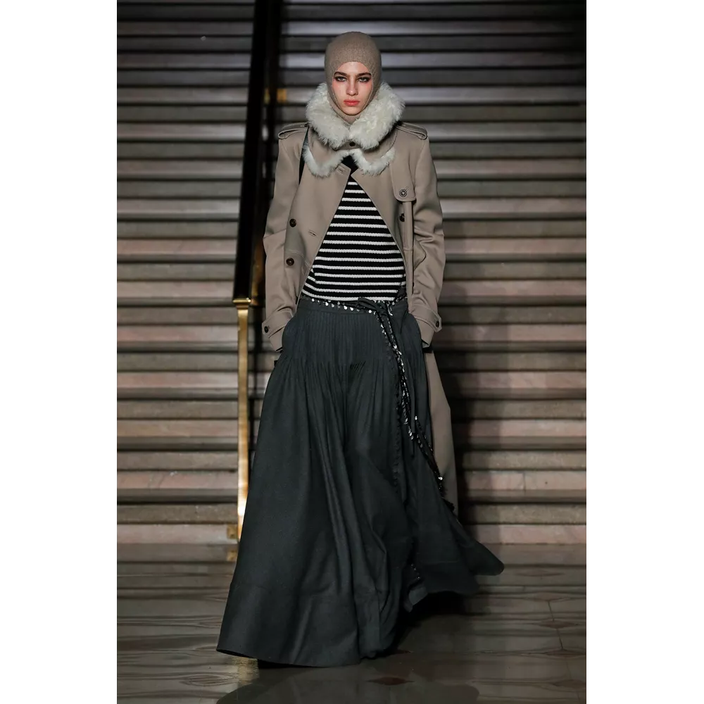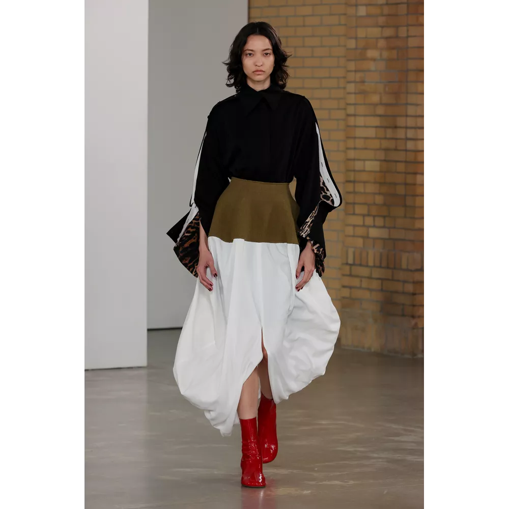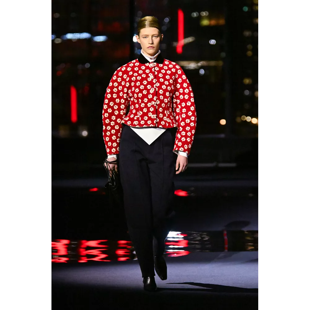 Από την άλλη, η νοσταλγική συλλογή του Brandon Maxwell αποτίνει φόρο τιμής στην αγαπημένη του (και πολύ στιλάτη!) γιαγιά – η οποία αποτέλεσε πηγή έμπνευσή του σε πολλές συλλογές- και περιλαμβάνει σ' αυτή ένα φλοράλ μοτίβο [σ.σ. αυτό στο φόρεμα με το οποίο περπάτησε στην πασαρέλα η Karlie Kloss] που είχε σχεδιάσει ο παππούς του για εκείνη. Η χρωματική παλέτα της κολεξιόν κινείται σε γήινους τόνους και βασικές αποχρώσεις (λευκό, μαύρο) και οι συνδυασμοί ανάμεσα σε casual και evening κομμάτια, πολυτελή και "καθημερινά" υφάσματα, όπως ας πούμε μια ball gown φούστα από "σπασμένο" σατέν μ' ένα cable knit πουλόβερ, φέρνουν το "παραμύθι" στα μέτρα της καθημερινότητας.