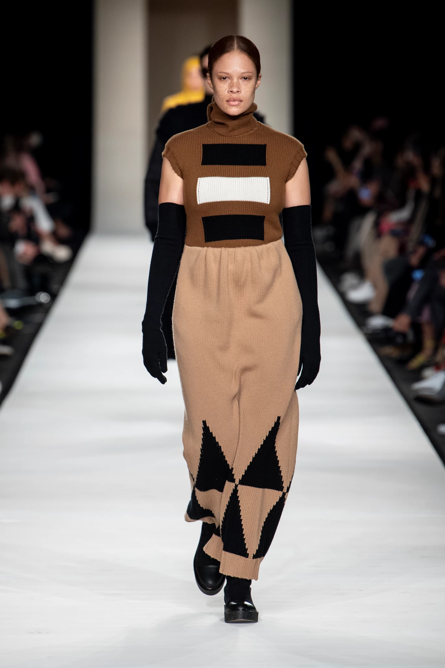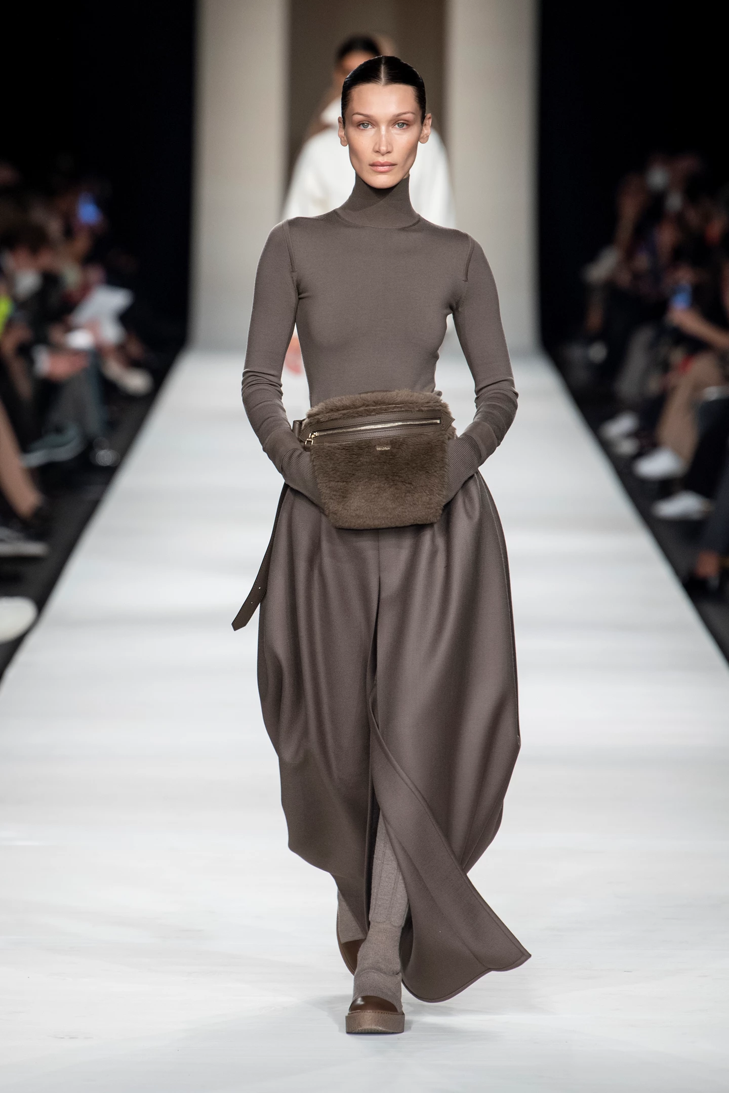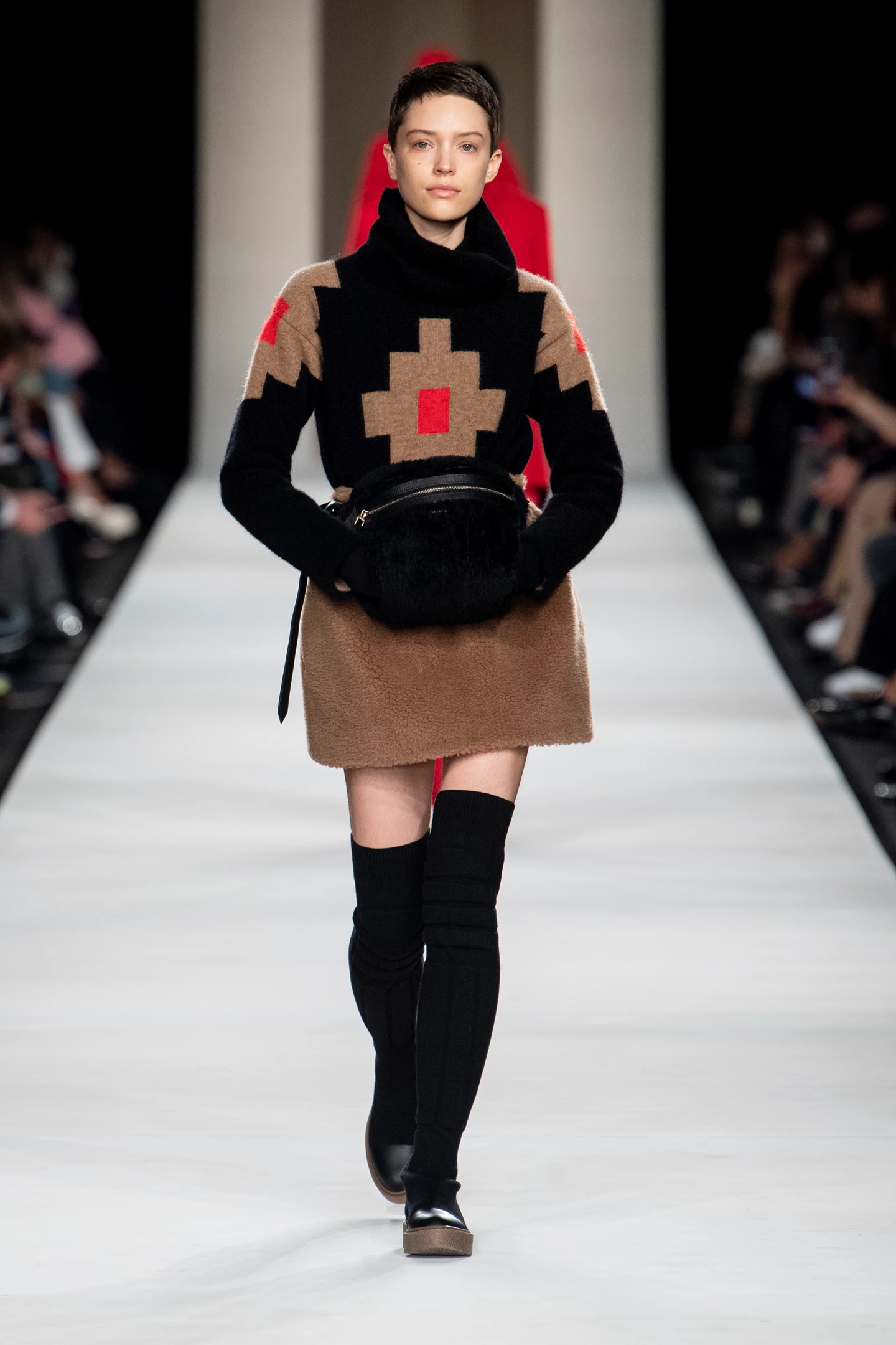 Στην FW'22 συλλογή Max Mara συναντάμε ανανεωμένες, γνώριμες σιλουέτες από προηγούμενες συλλογές- όπως τα μάξι ζέρσεϊ φορέματα με τη φούστα σε σχήμα καμπάνα, της Resort 2022 που αποκτούν εδώ γούνινη ή knit υφή και συνοδεύονται από μπαλακλάβα- και iconic κομμάτια όπως το Teddy Bear coat – και το αντίστοιχο γιλέκο- που συνδυάζονται με τη νέα πρόταση του οίκου: τα καπιτονέ φορέματα. Επιπλέον, το Teddy Bear αποκτά και ολοκαίνουργια must - have εκδοχή: με την προσθήκη layers μεταμορφώνεται σε oversized puffer.