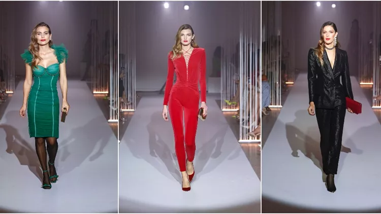 Το πάθος είναι το συναίσθημα που εμπνέουν τα looks της συλλογής: το κόκκινο βελούδο συνυπάρχει με το απόλυτο μαύρο και τις λάμψεις που θυμίζουν το πράσινο του σμαραγδιού. Σώματα αισθησιακά, ντυμένα με body-con φορέματα, συνδυάζονται με τη θηλυκότητα και την αποφασιστικότητα στο βήμα, για να δημιουργήσουν μια ωδή στην ομορφιά και την περηφάνεια, στη δύναμη του γυναικείου πνεύματος.