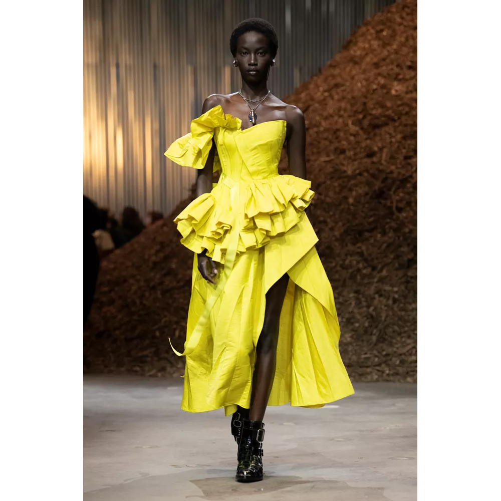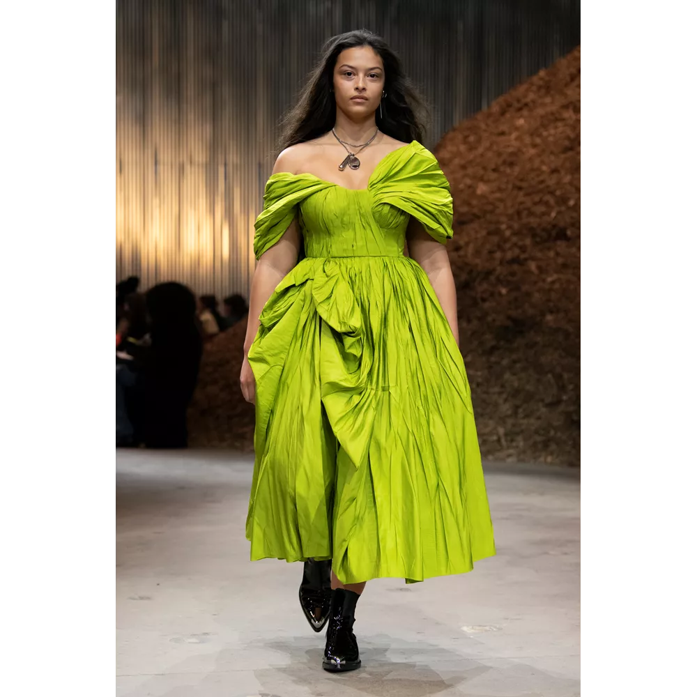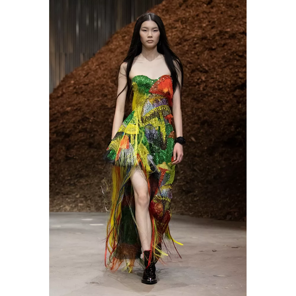 Στο σημείωμα που συνοδεύει την AW'22 συλλογή Alexander McQueen, η οποία παρουσιάστηκε ανάμεσα σε σωρούς από ευωδιαστό κομπόστ σε μία αποθήκη στο Μπρούκλιν της Νέας Υόρκης, η καλλιτεχνικής διευθύντρια του βρετανικού οίκου εξηγεί με λεπτομέρεια τη φιλοσοφία της πίσω από τη συλλογή "Μυκήλιο".