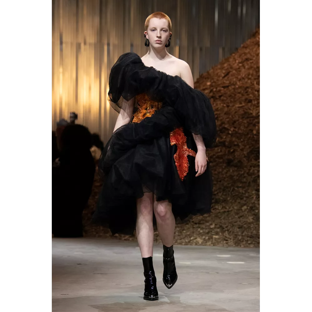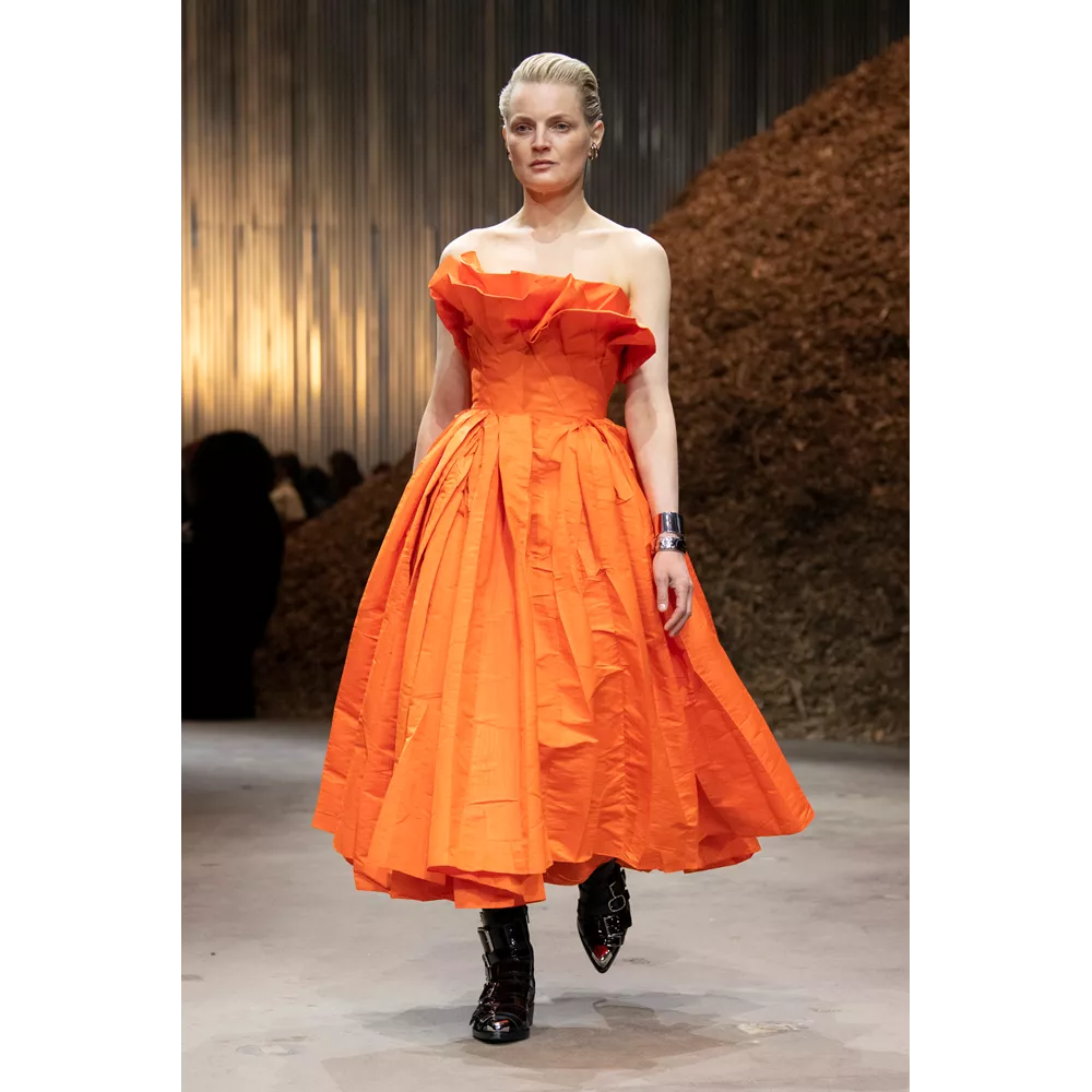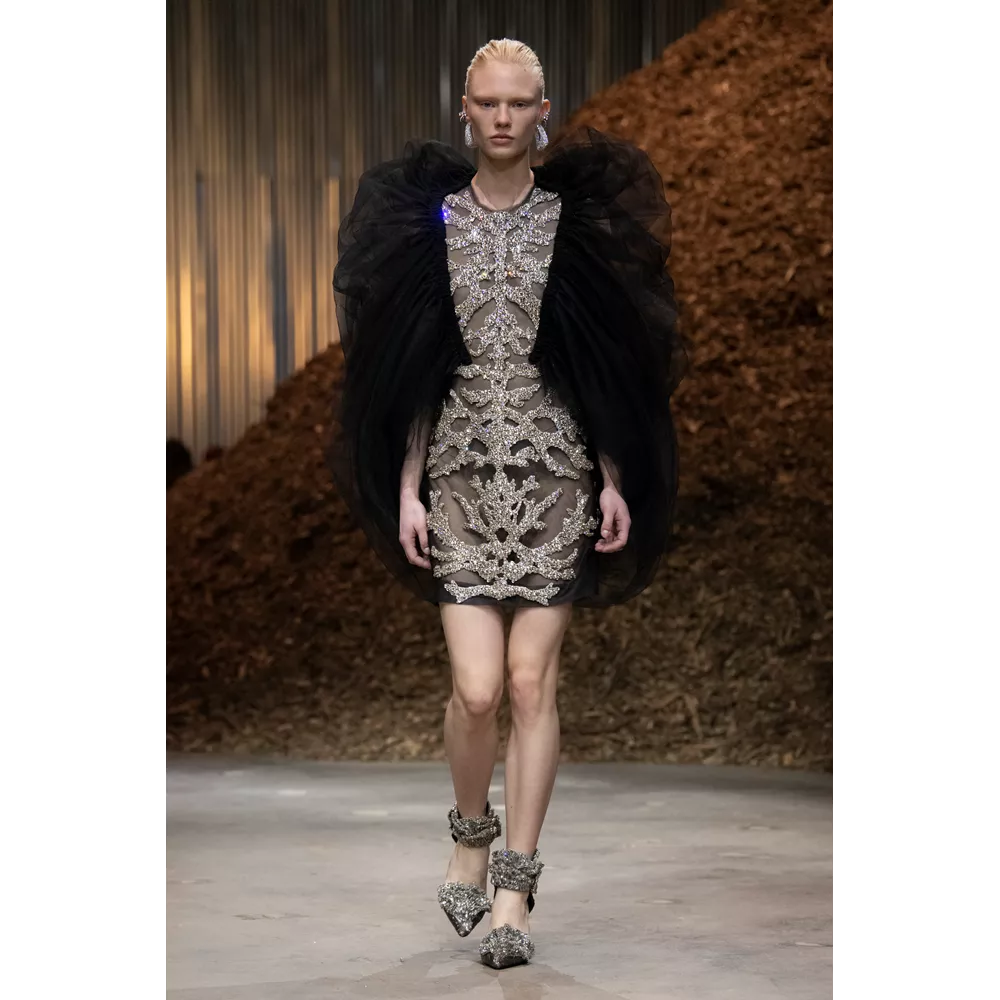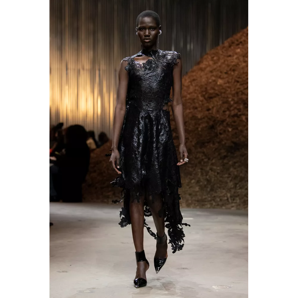 Στο σημείωμα που συνοδεύει την AW'22 συλλογή Alexander McQueen, η οποία παρουσιάστηκε ανάμεσα σε σωρούς από ευωδιαστό κομπόστ σε μία αποθήκη στο Μπρούκλιν της Νέας Υόρκης, η καλλιτεχνικής διευθύντρια του βρετανικού οίκου εξηγεί με λεπτομέρεια τη φιλοσοφία της πίσω από τη συλλογή "Μυκήλιο".