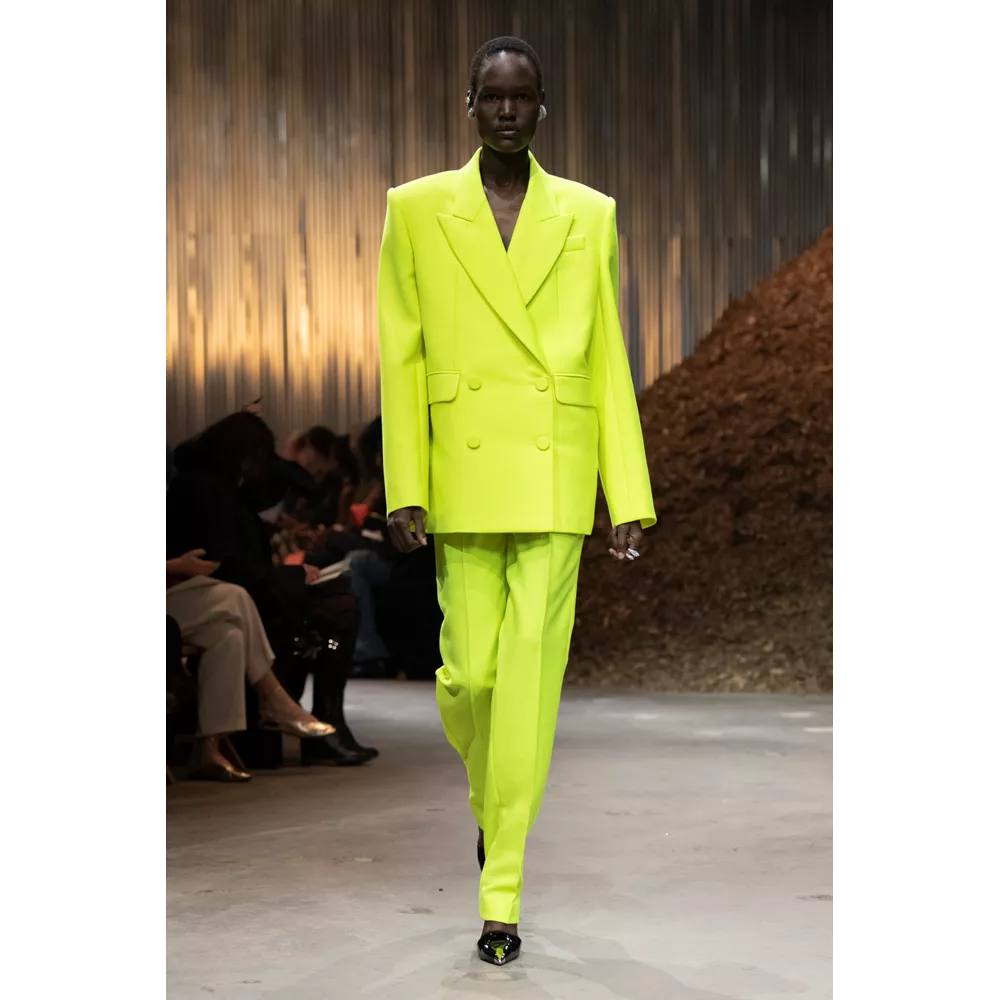 Τα χρώματα, επίσης, που επιλέγει η Burton για πολλές από τις δημιουργίες της δεν είναι αυτά στα οποία μας είχε συνηθίσει τις προηγούμενες κολεξιόν: τα παστέλ ροζ, τα γαλανά και τα γκρι δίνουν τη θέση τους σε απροσδόκητες αποχρώσεις όπως το lime πράσινο, το neon κίτρινο, το ζεστό πορτοκαλί και αποτελούν κομμάτι της έμπνευσης από τη φύση των μανιταριών που εξετάζει η Burton. Όπως το ίδιο είναι και τα βραδινά φορέματα και σακάκια της συλλογής που μιμούνται το σχέδιο των αποικιών των μυκήτων, το οποίο είναι κεντημένο με στρας.