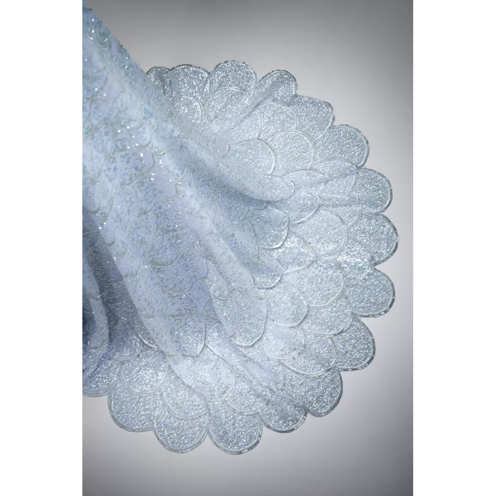 Για τη δημιουργία της φούστας απαιτήθηκαν 120 ώρες, και επιπλέον 250 ώρες για να κεντηθεί με πούλιες στο χέρι.