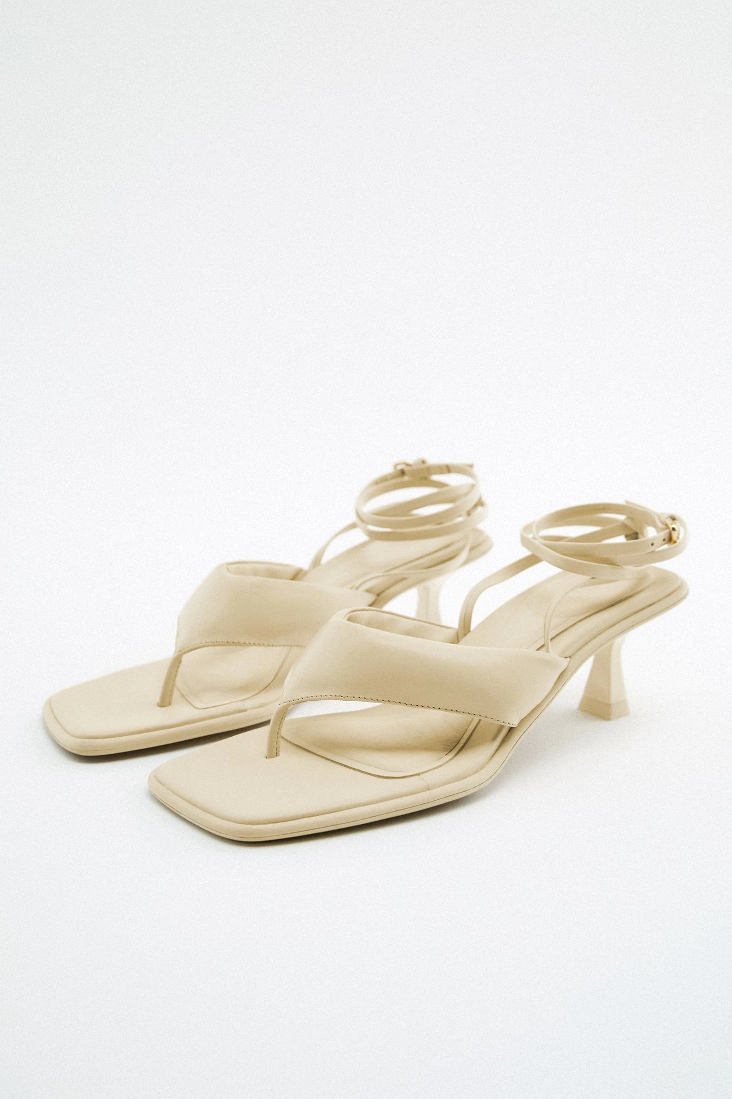 Δερμάτινο δετό πέδιλο με τακούνι εκρού, Zara.
