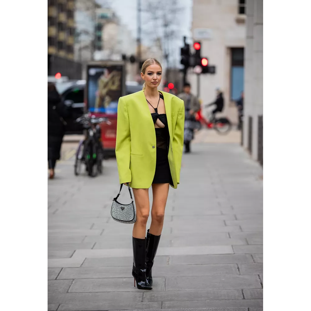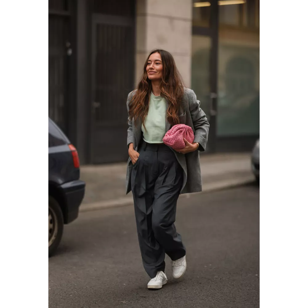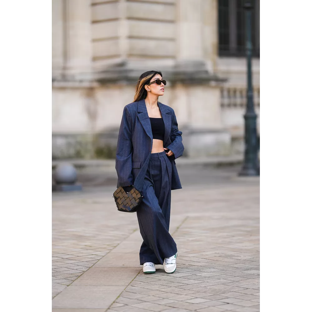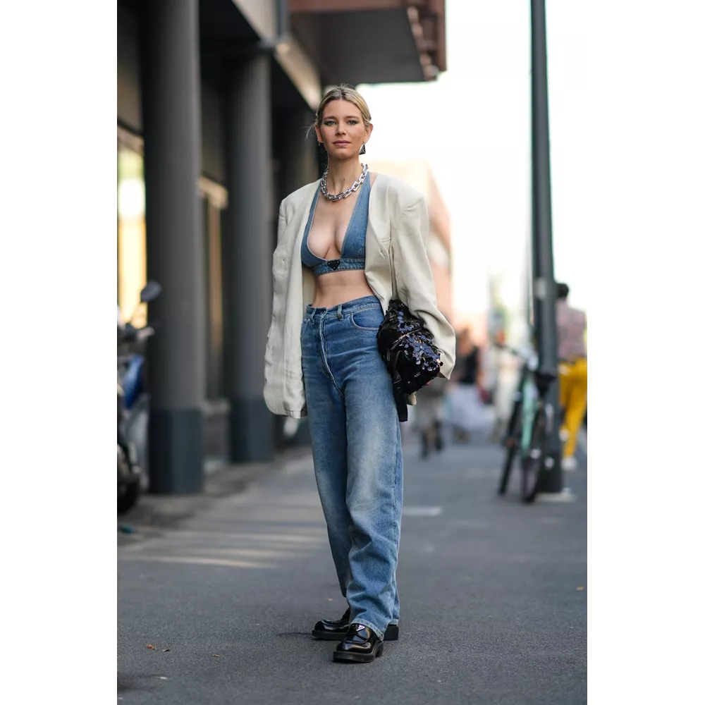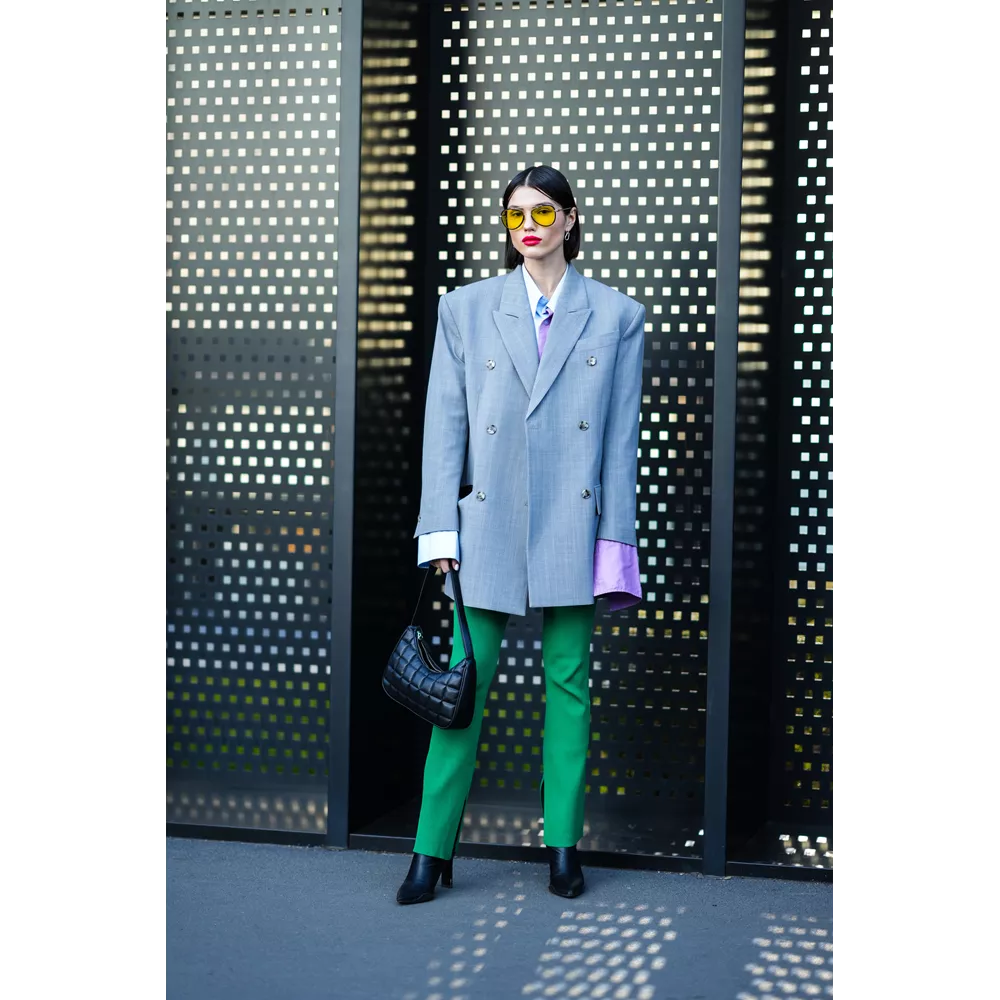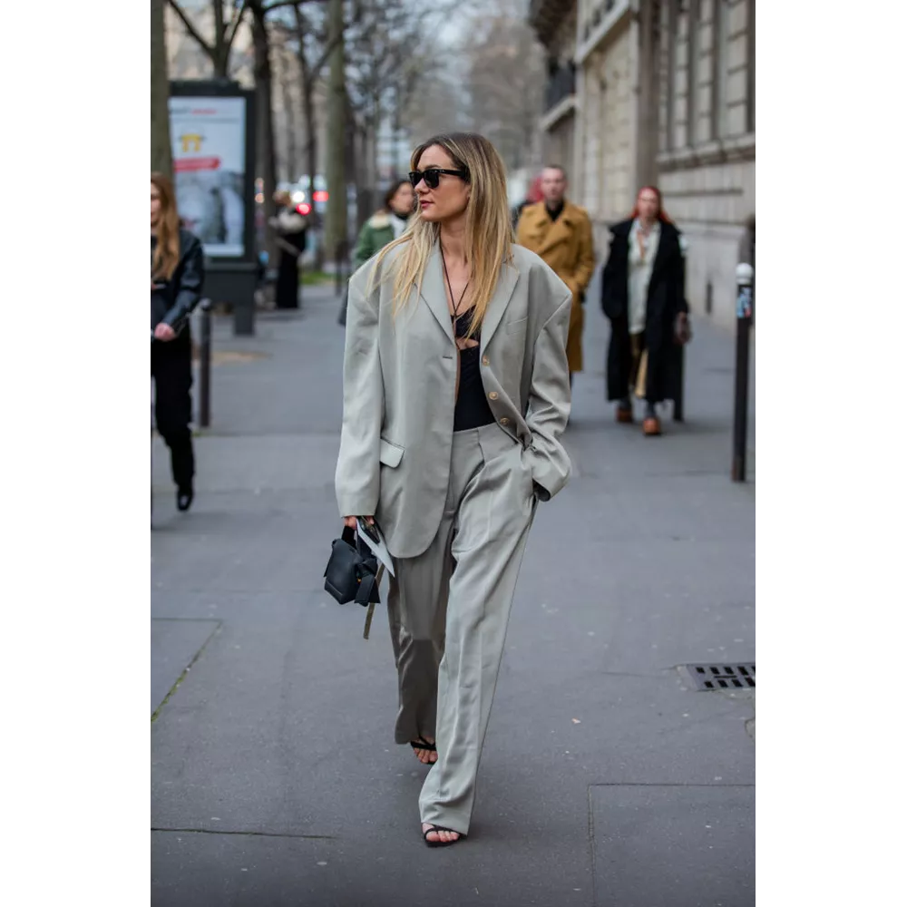 Ένα φαρδύ σακάκι μπορεί να είναι ευκολοφόρετο και ευέλικτο στο styling, ωστόσο η εφαρμογή του κρύβει μία μικρή παγίδα: να δείχνει υπερβολικά χαχόλικο και άχαρο πάνω σας. Με απλά λόγια, δεν είναι καθόλου δύσκολο να σας "καταπιεί". Για τον λόγο αυτό, οι ειδικοί της μόδας έχουν να προτείνουν πολύτιμες συμβουλές όπως αυτή της celebrity stylist Maeve Reilly, υπεύθυνη μεταξύ άλλων για τα looks των Hailey Bieber και Meghan Fox, η οποία μιλώντας στο harpersbazaar.com προτείνει να κρατάμε ένα από τα κομμάτια στο σύνολο εφαρμοστό ώστε να διατηρείται η ισορροπία στο outfit. "Κρατήστε στενό το πουκάμισο από μέσα από το σακάκι ή κάτι άλλο στο outfit, ώστε να μπορείτε να διακρίνετε με κάποιον τρόπο το σώμα σας. Προσωπικά, προτιμώ τον συνδυασμό φαρδύ σακάκι, φαρδύ παντελόνι και εφαρμοστό crop top".