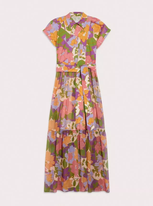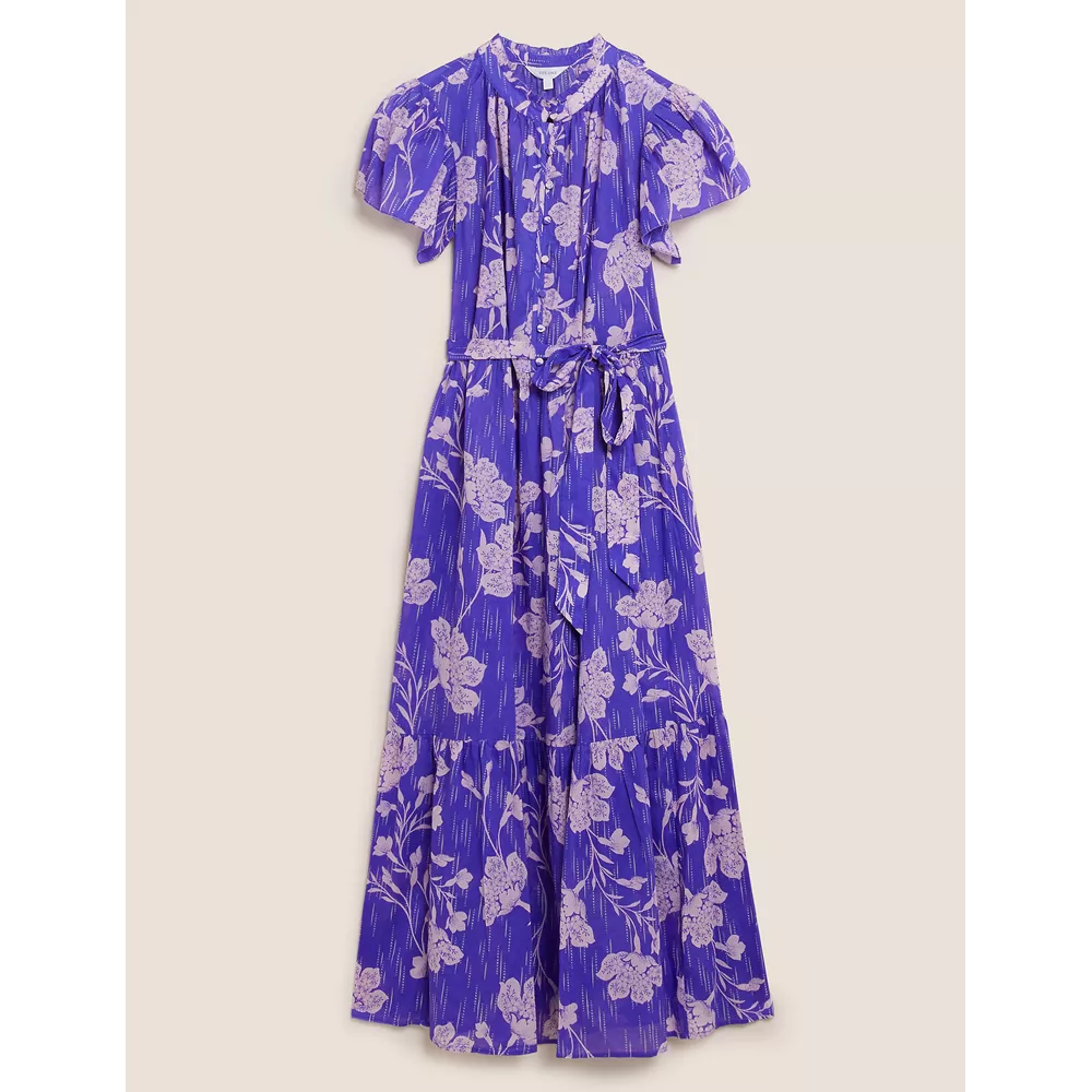 Φλοράλ μίντι-μάξι φόρεμα-πουκάμισο από 100% βαμβάκι, Marks&Spencer.