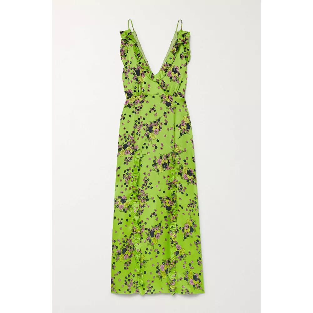 Φλοράλ σατέν μάξι φόρεμα με βολάν, Les Rêveries.
