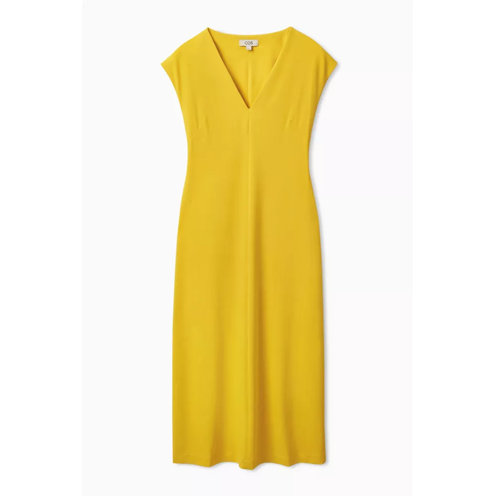 V-neck μίντι φόρεμα κίτρινο, Cos.