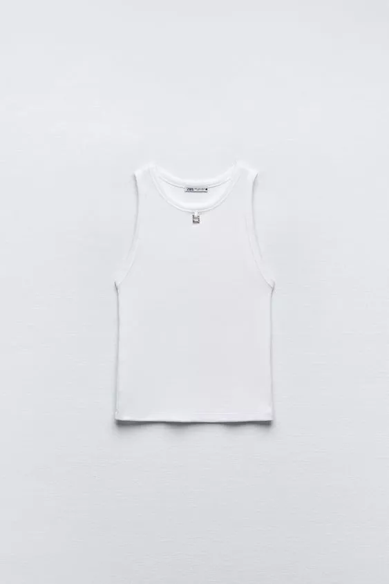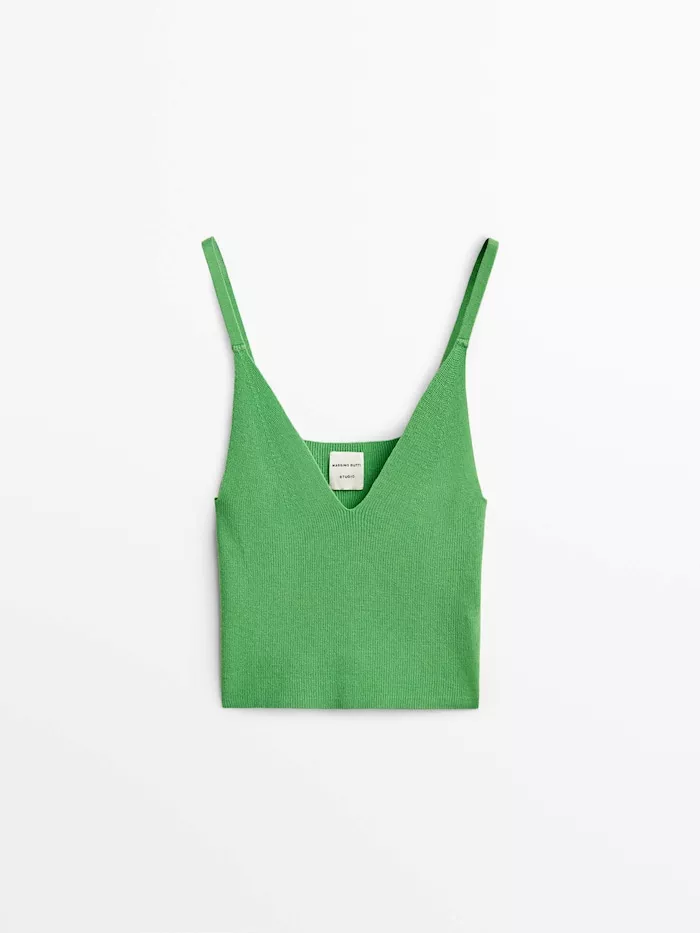 Πλεκτό τοπ με τιράντες πράσινο- Studio, Massimo Dutti.