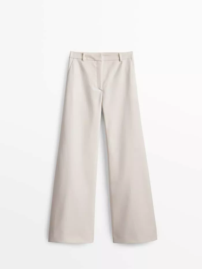 Παντελόνι κουστουμιού καμπάνα εκρού - Studio, Massimo Dutti.