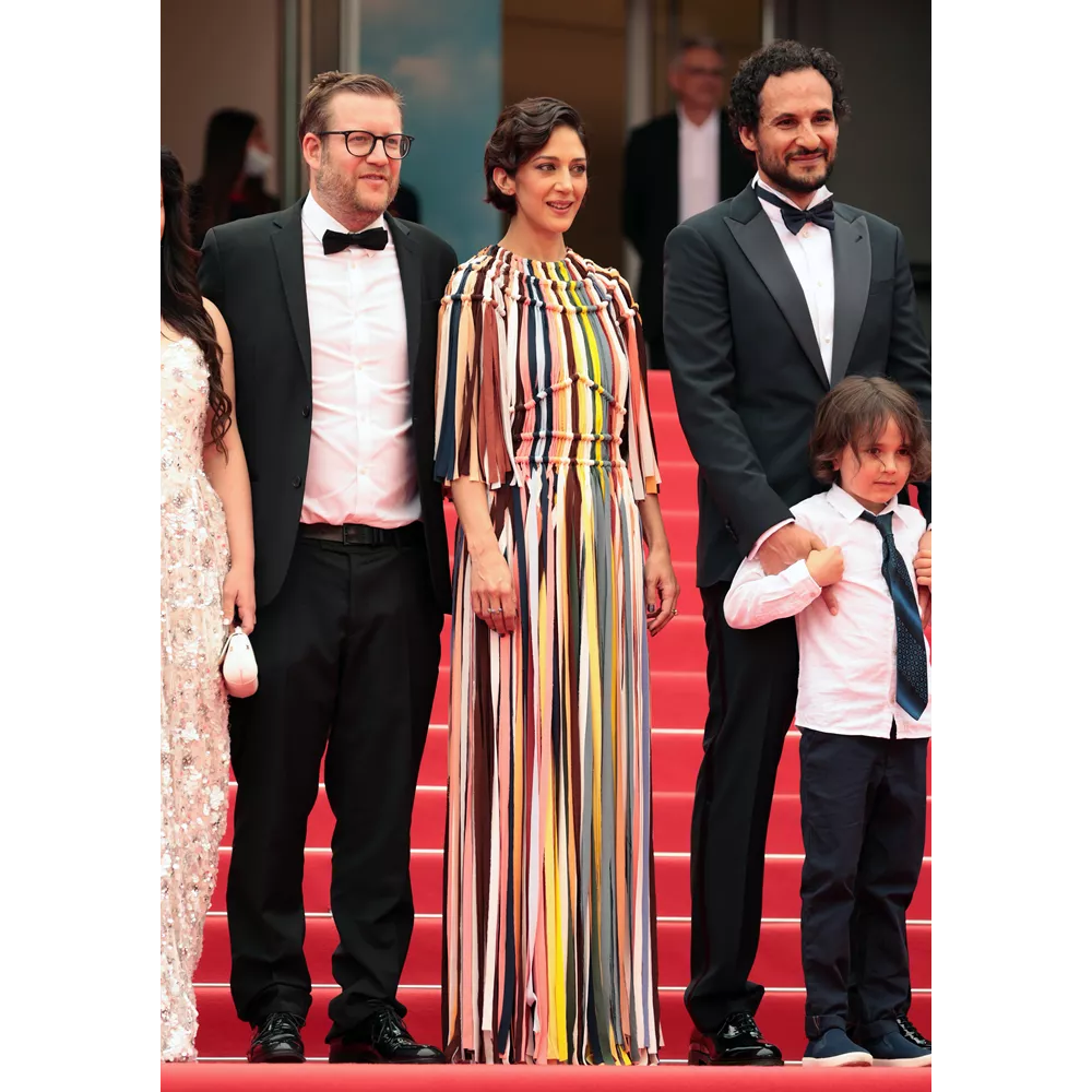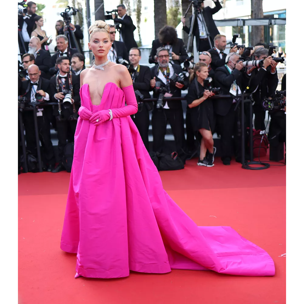 Τέλος, αξίζει να γίνει ιδιαίτερη αναφορά στο vintage βραδινό φόρεμα Versace με το οποίο εμφανίστηκε η Bella Hadid (συνεχίζοντας, βεβαίως, να υποστηρίζει την ιδέα της ανακύκλωσης vintage δημιουργιών στο κόκκινο χαλί που είχε υιοθετήσει και στην προηγούμενη συμμετοχή της στο Φεστιβάλ, το 2021): πρόκειται για ένα στράπλες βραδινό φόρεμα με ντραμπέ μπούστο από μαύρη ζορζέτα, φούστα από βελούδο και μια εντυπωσιακή φιοριτούρα από ταφτά στη μέση, που σχεδίασε το 1987 ο Gianni Versace για την αυστριακή σοπράνο και μέτζο- σοπράνο Helga Dernesch για την περφόρμανς της στην όπερα Salomé στη Σκάλα το Μιλάνου.