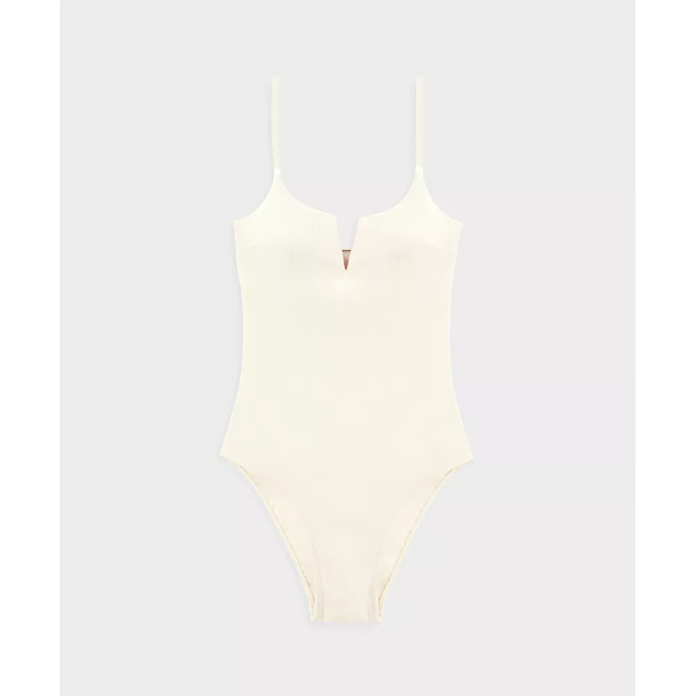 Ολόσωμο μαγιό με ντεκολτέ V πικέ, Oysho.