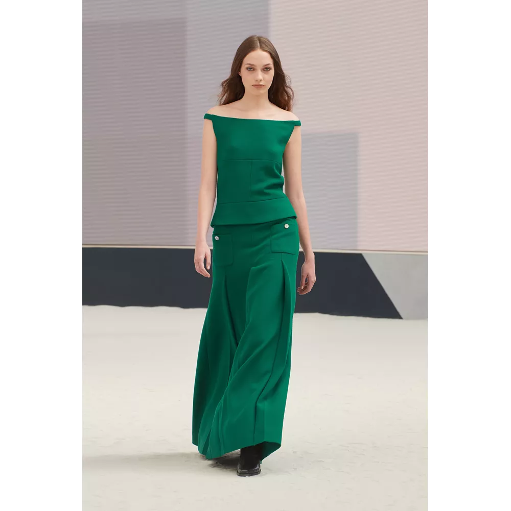 Πρωταγωνιστή, λοιπόν, της Haute Couture συλλογής για τη σεζόν Φθινόπωρο – Χειμώνας 2022-23 χρήζει ένα εμβληματικό κομμάτι της γυναικείας ενδυνάμωσης και σύμβολο του οίκου Chanel: το γυναικείο κοστούμι. Μάλιστα, θέλοντας να αποτίνει φόρος τιμής στη ιδρύτριά του οίκου, τη Mademoiselle Chanel, τη γυναίκα που έφερε την καινοτομία στο είδος, η Viard επιστρέφει στα 1930s, για έμπνευση: "Σ' αυτή τη νέα συλλογή υπάρχουν κοστούμια, μακριά φορέματα όπως η Mademoiselle Chanel τα φαντάστηκε στα '1930s: εφαρμοστά στο σώμα αν και εδώ έχουν πιο στιβαρούς ώμους και πλισέ φορέματα όπως για παράδειγμα το νυφικό φόρεμα", θα πει η σχεδιάστρια προσθέτοντας ότι έχει αξιοποιήσει επίσης τη δαντέλα, όχι όμως σαν κέντημα αλλά ως ένθετο και επαναχρωματισμένη, ενώ η παλέτα χρωμάτων που αξιοποιεί περιλαμβάνει το φωτεινό πράσινο, το χακί, το μπεζ, το ροζ, και αρκετό μαύρο και ασημί - αποχρώσεις δηλαδή που αποδίδουν μία γήινη και "καθημερινή" διάσταση στα ρούχα.