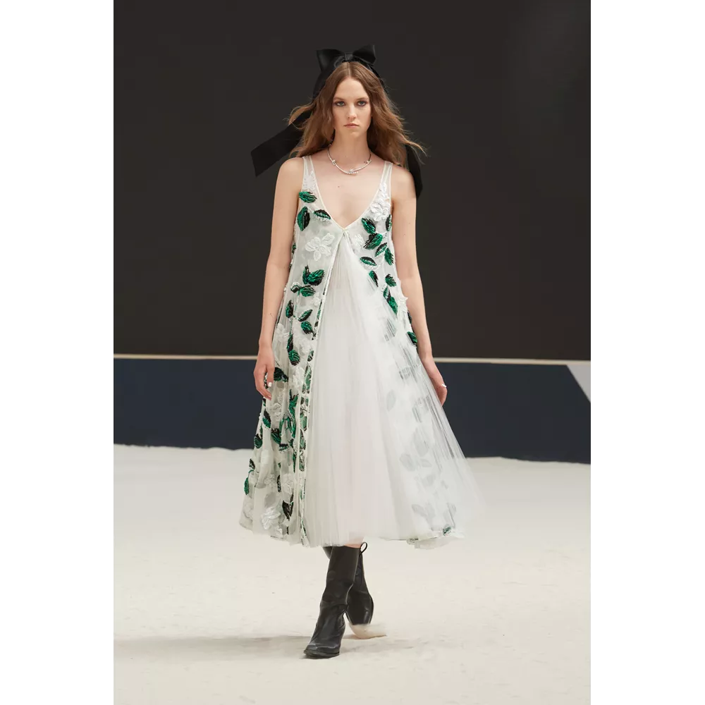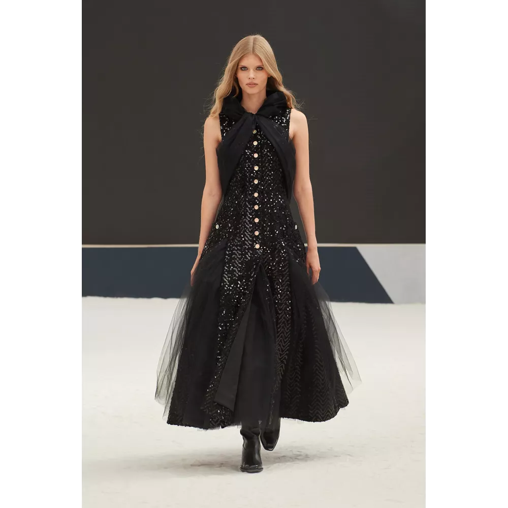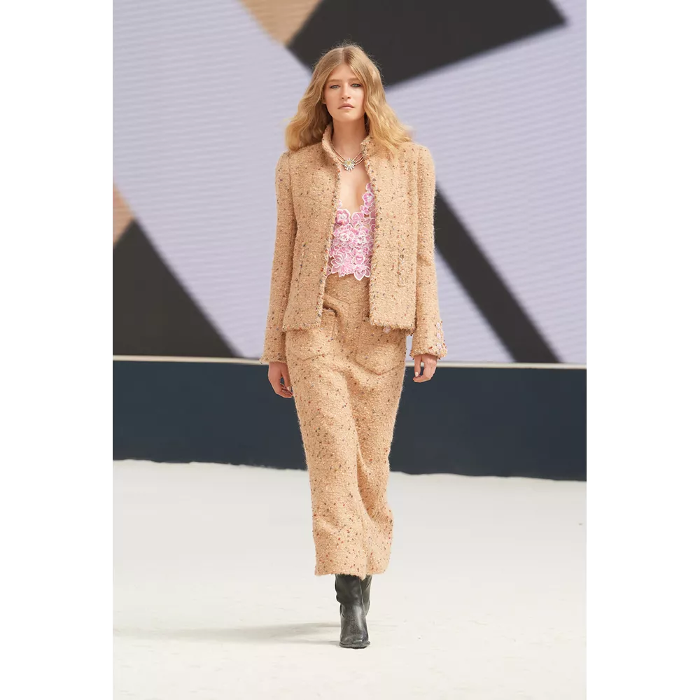 Η κεντρική φιλοσοφία στα looks που σχεδιάζει η Virginie Viard για τις συλλογές της Chanel δεν διαφοροποιείται ούτε εδώ. Η ίδια τη συμπυκνώνει στην εξής φράση: "Επιδιώκω ένα natural look. Τα ρούχα παραμένουν ανάλαφρα, θηλυκά, σχεδιασμένα για να φορεθούν. Δεν θα μπορούσα να φανταστώ τον εαυτό μου να το κάνει διαφορετικά". Και αυτό γίνεται εύκολα αντιληπτό από την επιμονή της σε σιλουέτες, σχέδια και υφές που κρατούν τον πήχη της απόλυτης κομψότητας ψηλά χωρίς ωστόσο να θέτουν κανένα δίλημμα για το αν, που και πως θα μπορούσαν να φορεθούν.