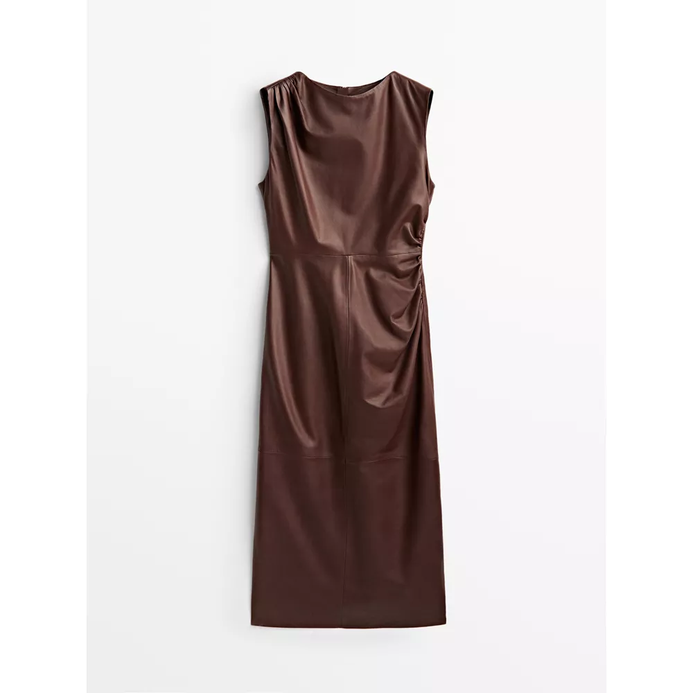 Φόρεμα από δέρμα νάπα με σούρα, Massimo Dutti.