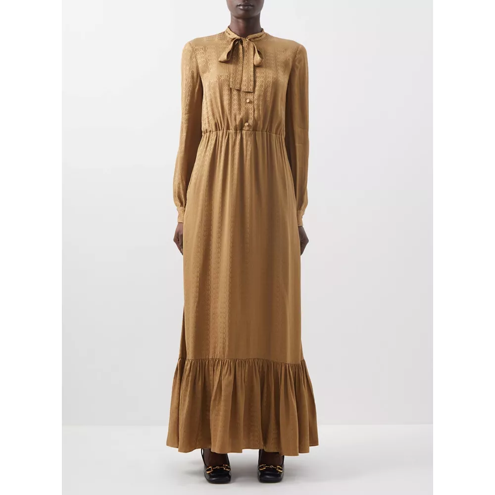 GG-jacquard μεταξωτό μάξι shirt dress, Gucci.