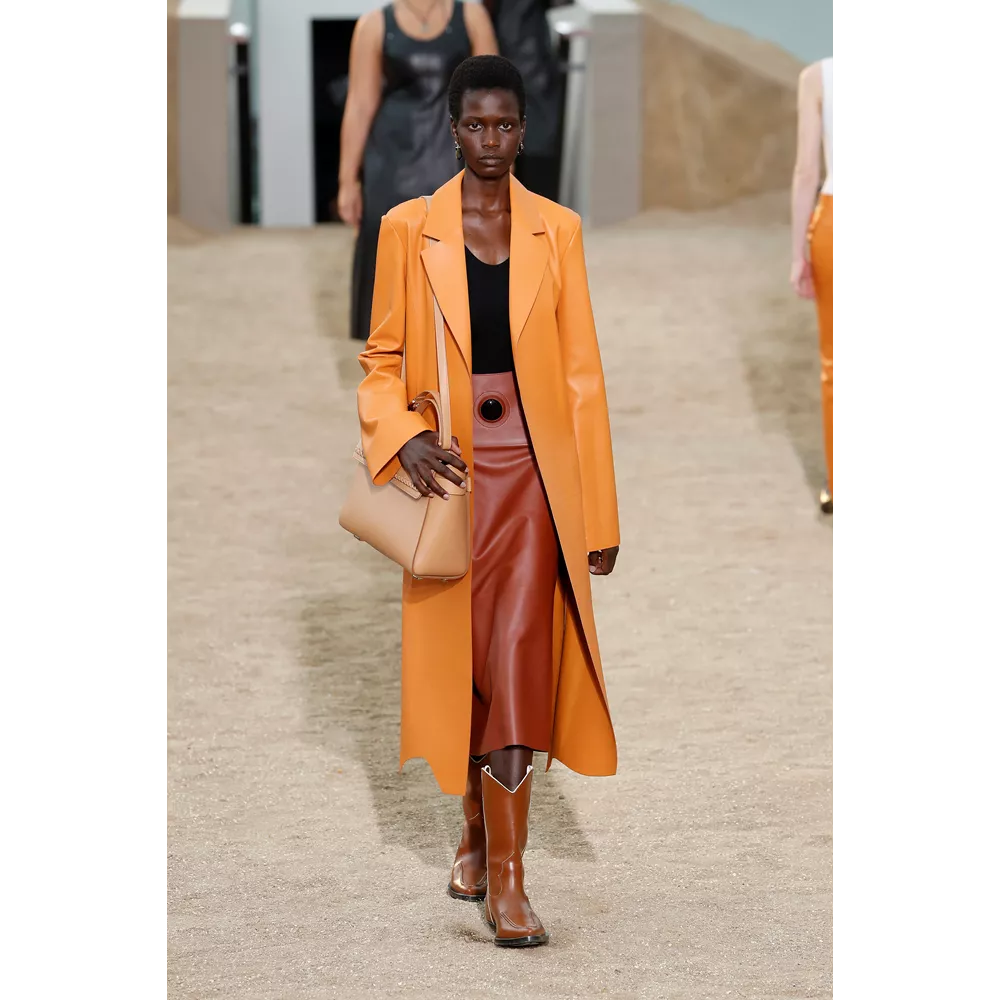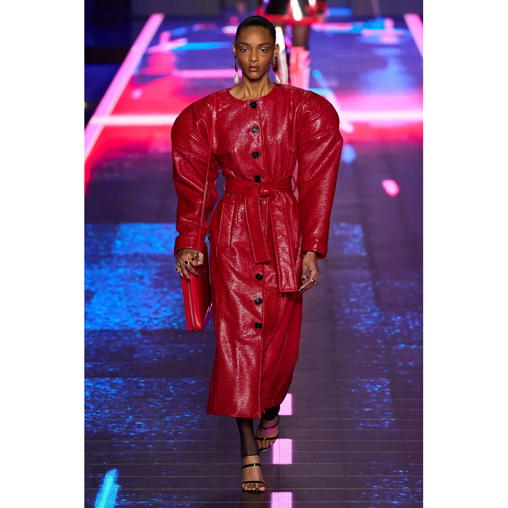 Από τις κυρίαρχες τάσεις στα παλτό δεν απουσιάζει και αυτή που έρχεται στα πλαίσια μιας γενικότερης που μας θέλει φέτος να φοράμε δερμάτινα. Τα δερμάτινα biker jackets είναι το must - have πανωφόρι της σεζόν, ενώ τα δερμάτινα παλτό φαίνεται να είναι αυτά που θα παραλάβουν τη σκυτάλη καθώς προχωράμε πιο βαθιά στον χειμώνα. Οι σχεδιαστές, βεβαίως, φροντίζουν για φέτος να τους προσφέρουν ένταση μέσα από bold χαρακτηριστικά, όπως τα έντονα χρώματα, τα γυαλιστερά φινιρίσματα και οι τονισμένες λεπτομέρειες σε ώμους και γιακάδες. Prada, Dior, Chloé, Ermanno Scervino, Chanel, Dolce & Gabbana, Rejina Pyo, Saint Laurent φιλοξενούν στις Φ/Χ 2022-23 συλλογές τους τα bold leather coats στα οποία αξίζει να επενδύσετε αν θέλετε να υιοθετήσετε την τάση.