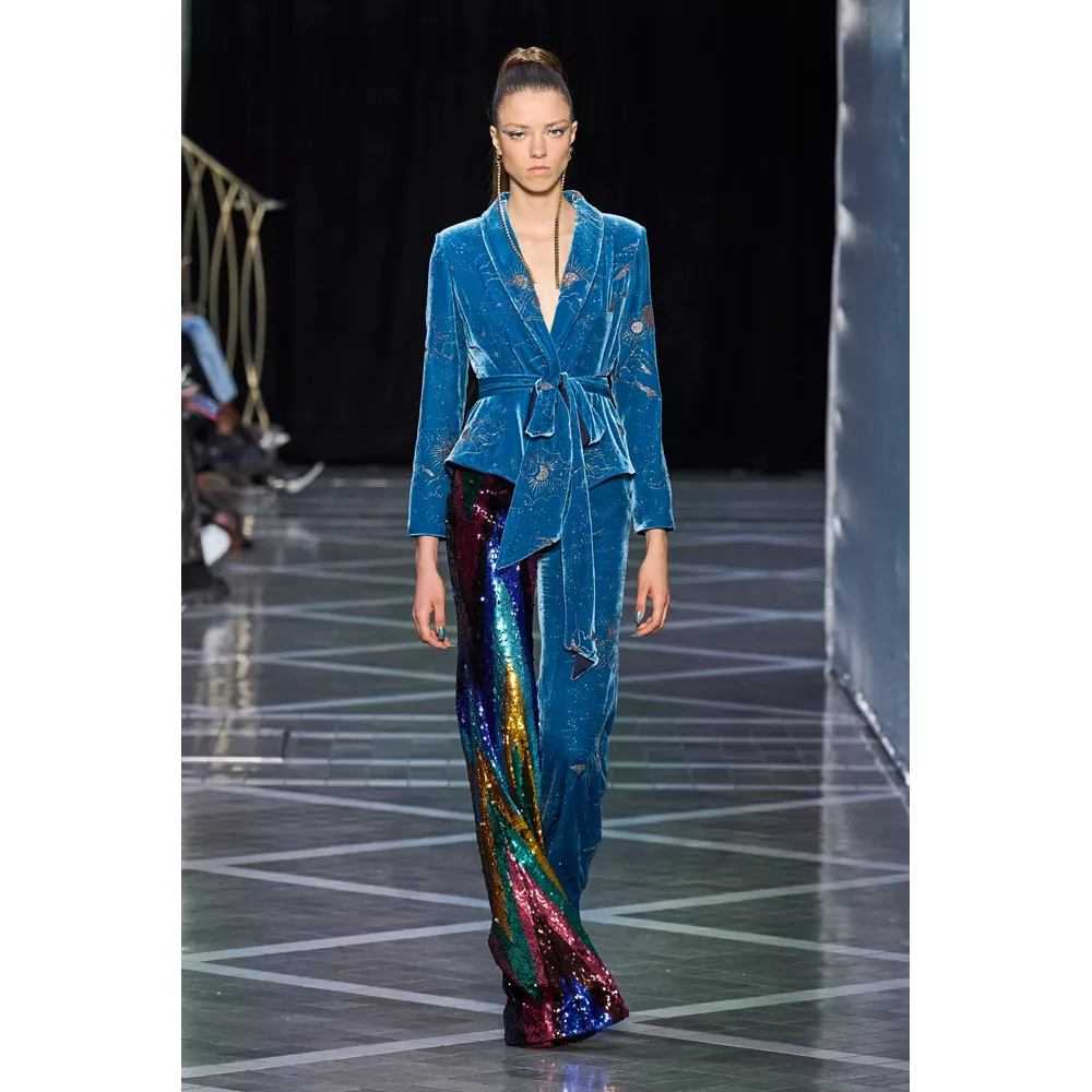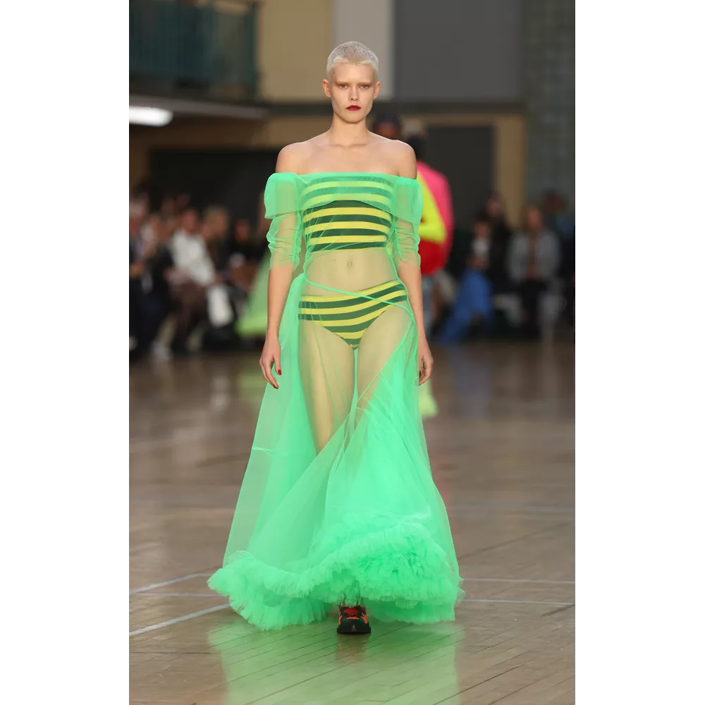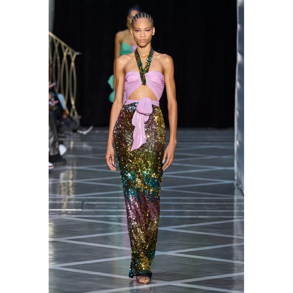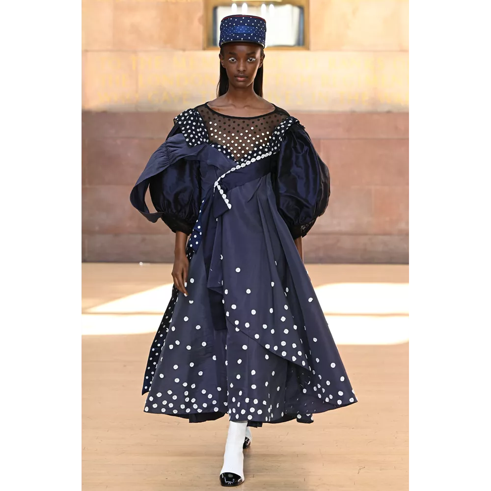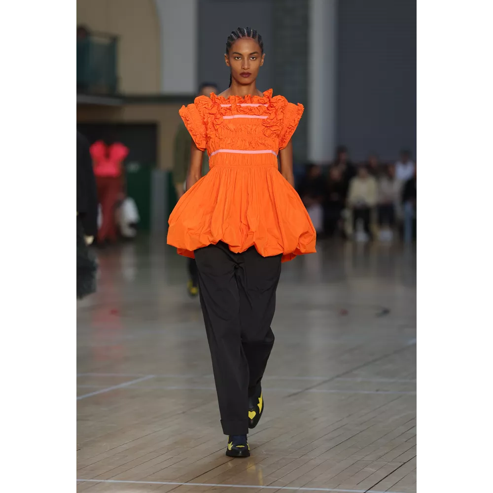 -Τον grandiose τρόπο με τον οποίο ο Αμερικανός στην καταγωγή, αλλά διάσημος πρωτίστως στη Μεγάλη Βρετανία, Harris Reed, αντιλαμβάνεται το drama. Τα μεγαλειώδη looks του, σε πολλά από τα οποία ξεχωρίζουν υπερμεγέθη headpieces που θυμίζουν φωτοστέφανα, μοιάζει να επιχειρούν να επανερμηνεύσουν το χολιγουντιανό glam για να το περάσουν σε μία επόμενη εποχή, πιο σύγχρονη, πιο σουρεαλιστική, πιο fun.