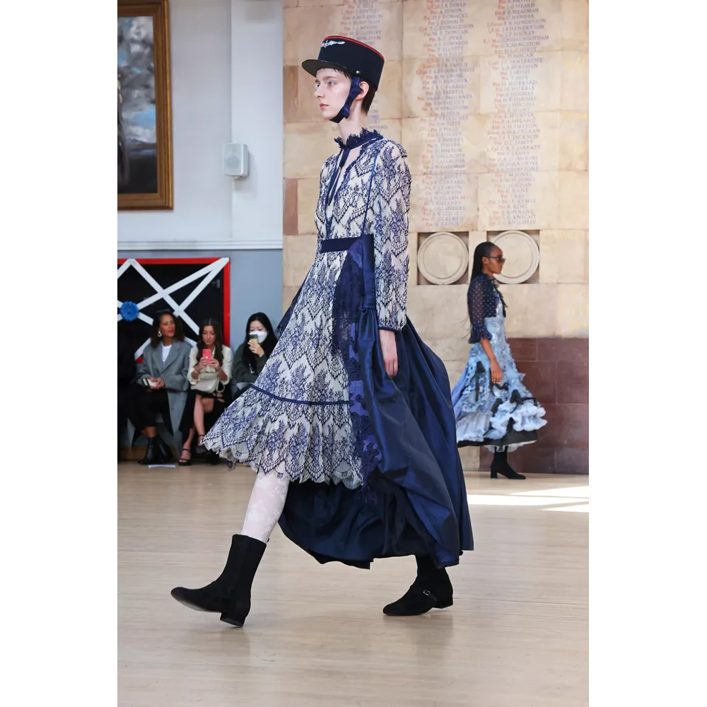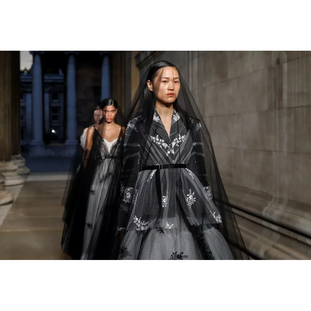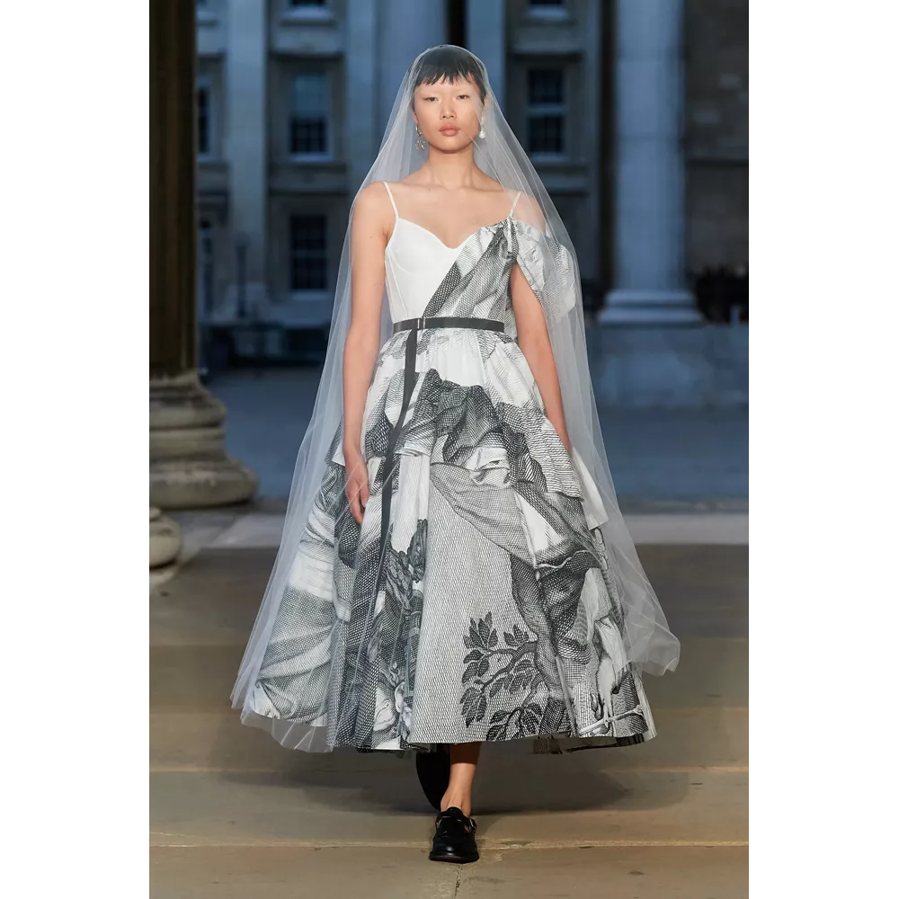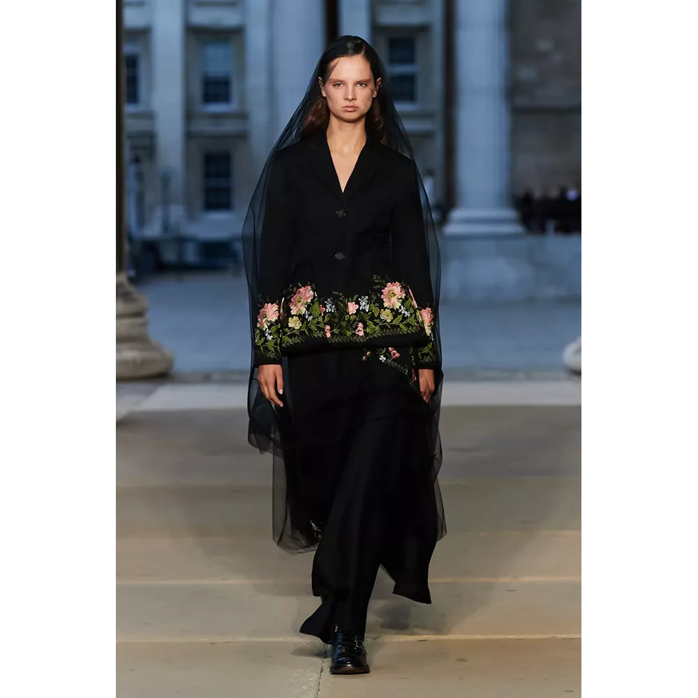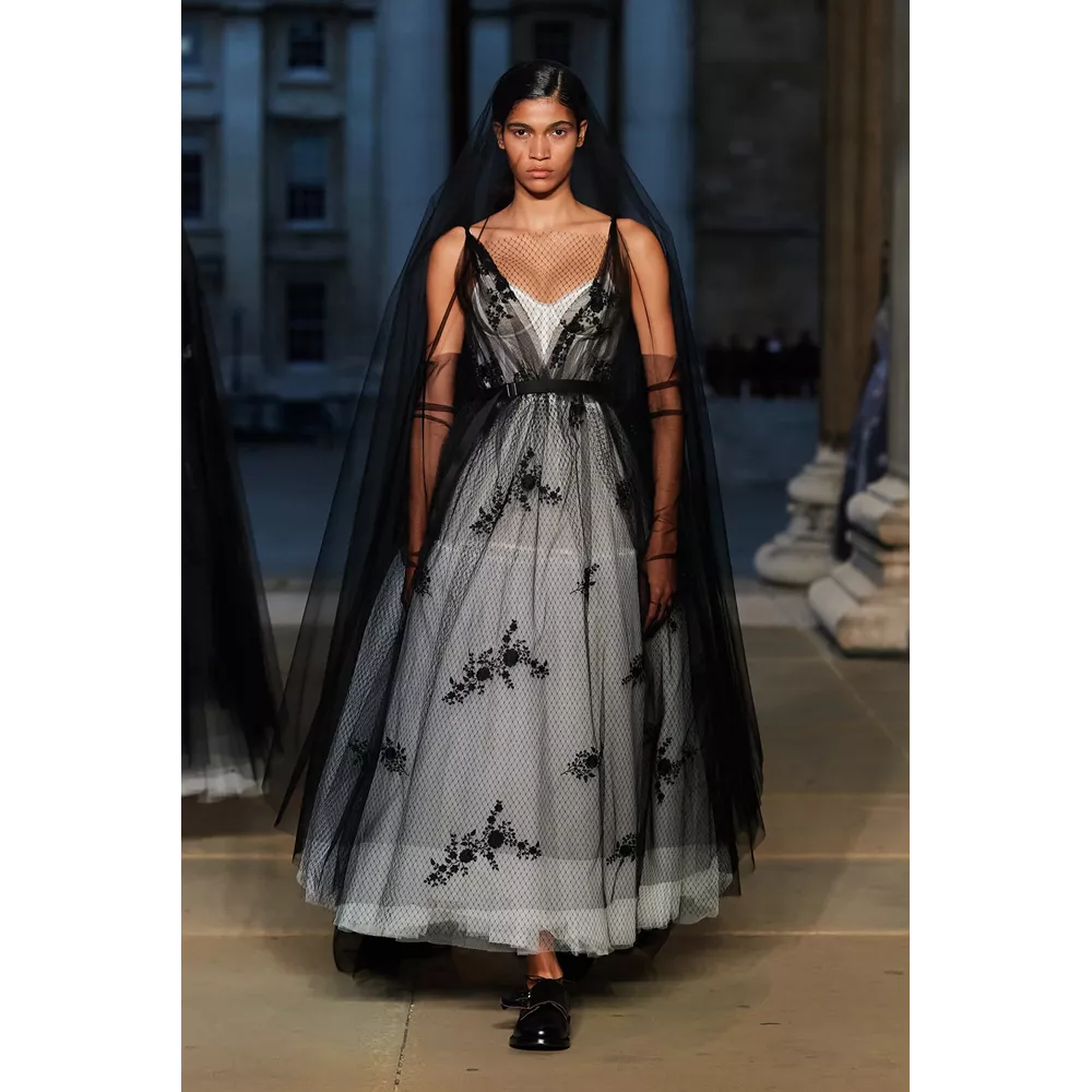 Και μπορεί τα party και τα openings, οι flashy εμφανίσεις και τα celebrity front rows να πήραν αναβολή για επόμενες fashion weeks, όμως οι συλλογές δεν στερήθηκαν τίποτα από την αίγλη που περιβάλλει ένα catwalk- και κυρίως, δεν στερήθηκαν αυτό που σκέφτηκαν οι σχεδιαστές για πλαισιώσουν την παρουσίασή τους. Εκείνο το οποίο, ωστόσο, προέκυψε ως έξτρα ήταν οι αναφορές - φόρος τιμής στη Βασίλισσα Ελισάβετ από τους οίκους οι οποίοι αποφάσισαν ότι το "show must go on" παρά το πένθος για τη μονάρχη: ο οίκος Erdem αφιέρωσε τη συλλογή του στην Ελισάβετ ξεκινώντας στο show του με τα λόγια της "Grief is the price we pay for love" ("Η θλίψη είναι το τίμημα που πληρώνουμε για την αγάπη") και ντύνοντας πολλά από τα μοντέλα του με μακρύ μαύρο βέλο, ο JW Anderson - ο οποίος επέστρεψε στο Λονδίνο μετά τα shows στο Μιλάνο- έκλεισε το show του μ' ένα μαύρο t-shirt το οποίο έγραφε "Her Majesty The Queen, 1926-2022, Thank you" και o Harris Reed, o οποίος προχώρησε κανονικά μ' ένα show - υπερθέαμα - στη διάρκεια του οποίου ο Adam Lambert ερμήνευε ζωντανά άριες και τραγούδια των Queen-, ολοκλήρσωσε την παρουσίαση των dramatic looks του με μία bridal δημιουργία με το μοντέλο να κρατά στα χέρια του μία ανθοδέσμη με τα αγαπημένα λουλούδια της Ελισάβετ, τα κρίνα.