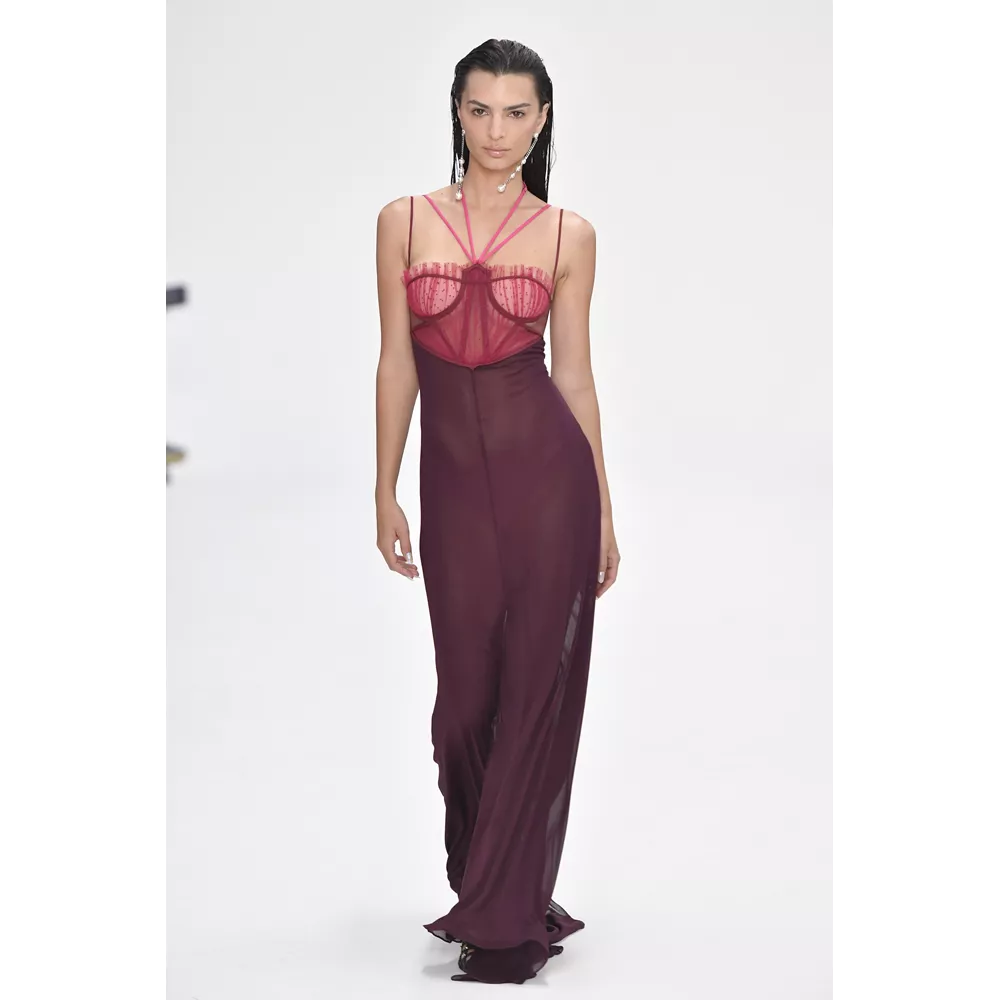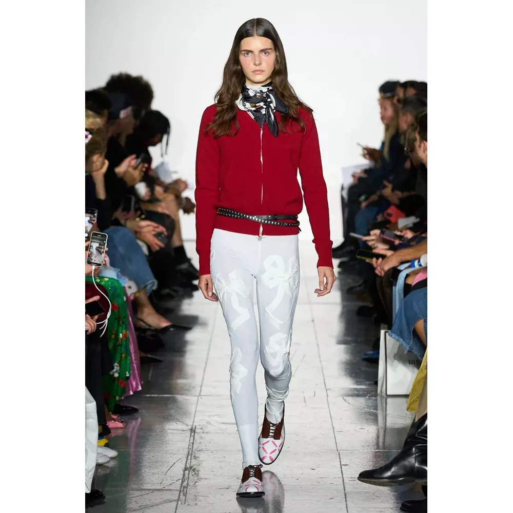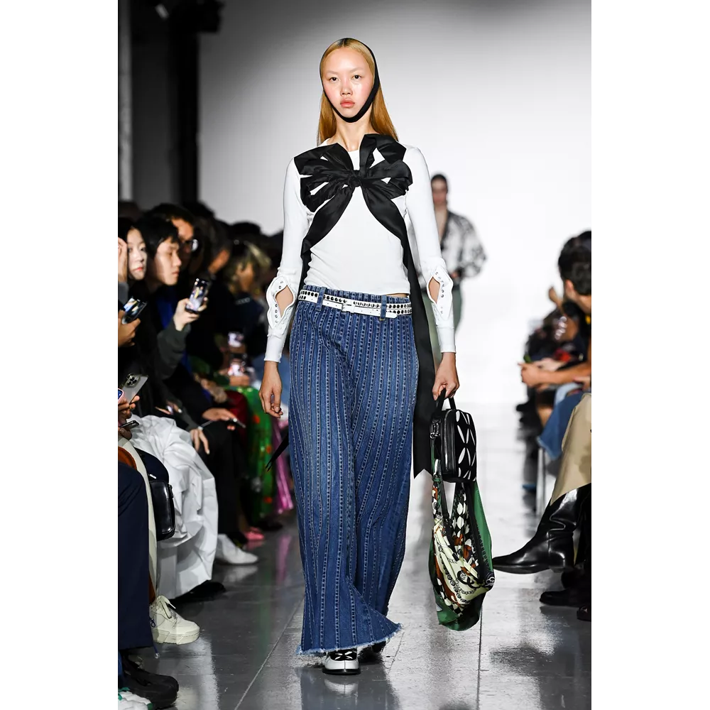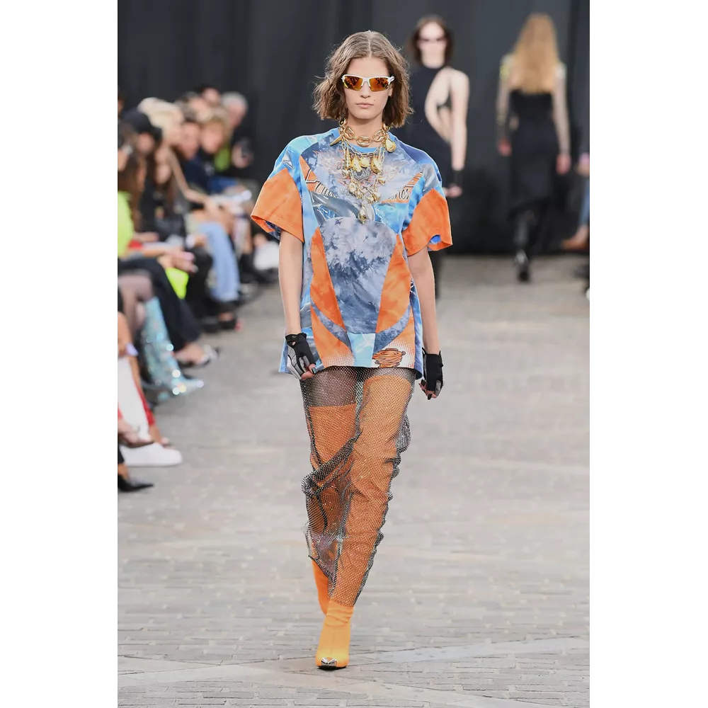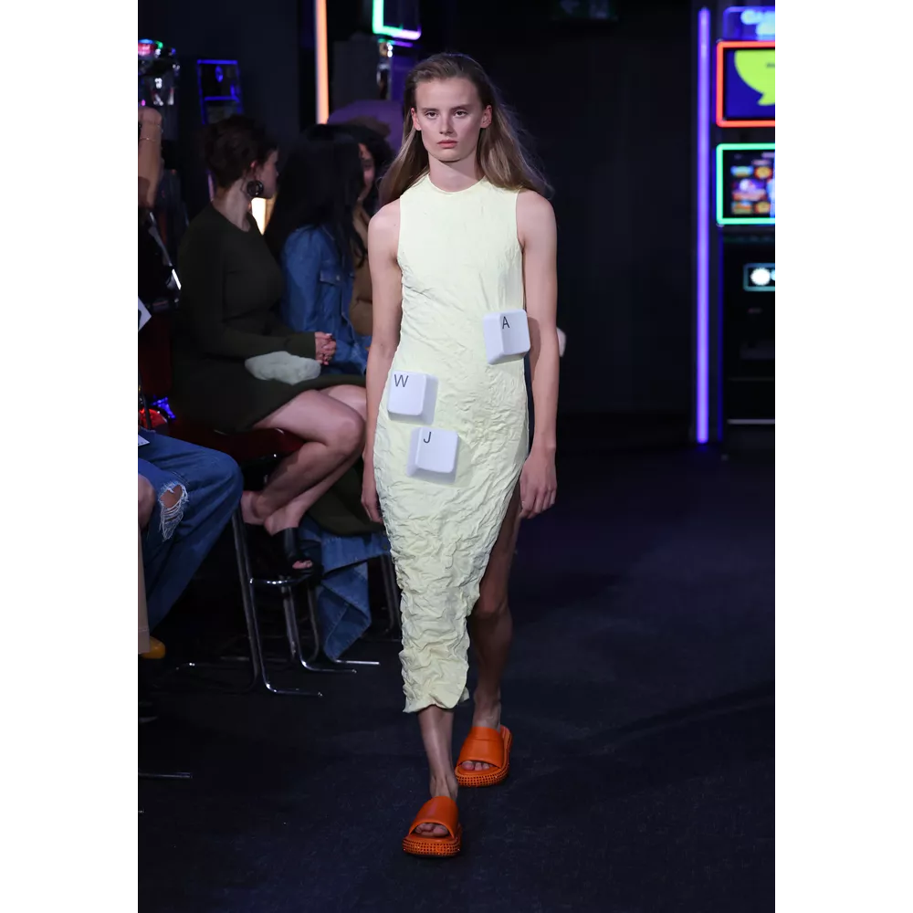 -Τον νεο-σουρεαλισμό του JW Anderson που για την SS'23 συλλογή αντλεί την έμπνευσή του, όπως δήλωσε ο ίδιος, από "το παράλληλο σύμπαν των ανθρώπων που είναι παγιδευμένοι στους υπολογιστές του" και δημιουργεί φορέματα - πληκτρολόγια, t-shirt dresses με logos από διάφορες γραμματοσειρές, ένα φόρεμα - μεταλλική σφαίρα και δυο που μιμούνται τις πλαστικές σακούλες μέσα στις οποίες μεταφέρονται τα χρυσόψαρα. Την ίδια στιγμή, στέλνει στην πασαρέλα ένα από τα πιο σέξι μοντέλα του πλανήτη, την Emily Ratajkowski, ντυμένη σχεδόν ...σεμνά, με μαύρο t-shirt και φαρδύ παντελόνι με σκισίματα. Bonus extravaganza, ο τρόπος που ο πολυτάλαντος Βρετανός σχεδιαστή συστήνει να φορέσουμε τα πουλόβερ: με την κρεμάστρα περασμένη στον λαιμό και τον γιακά- ζιβάγκο να κοιτάει προς τα κάτω!