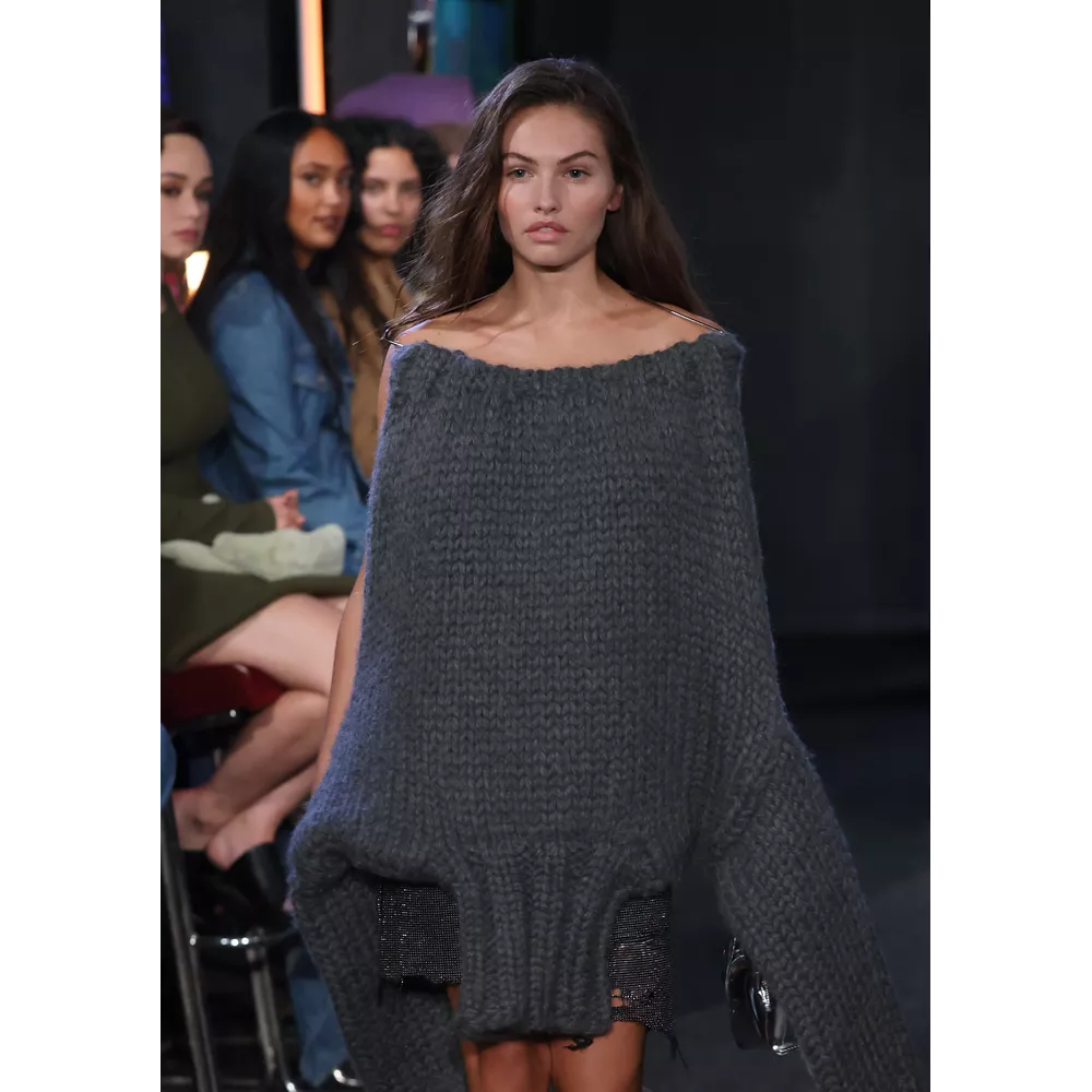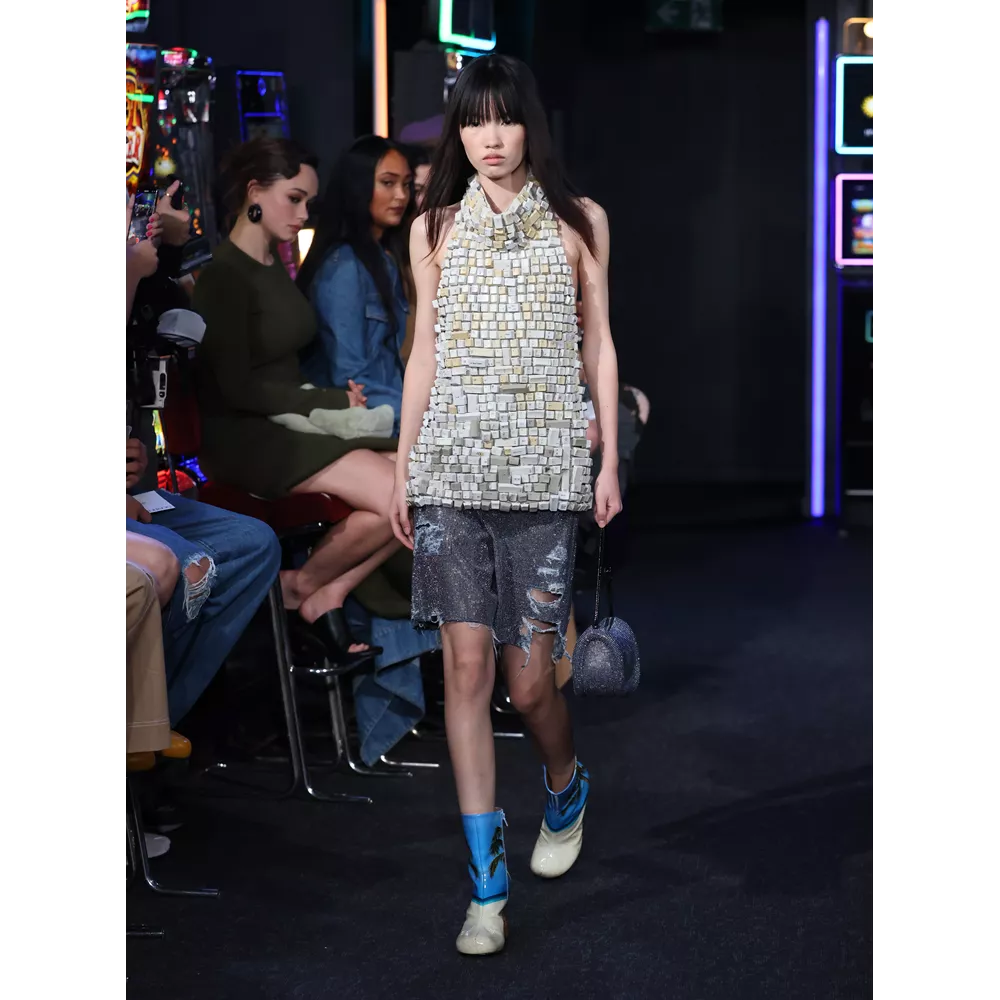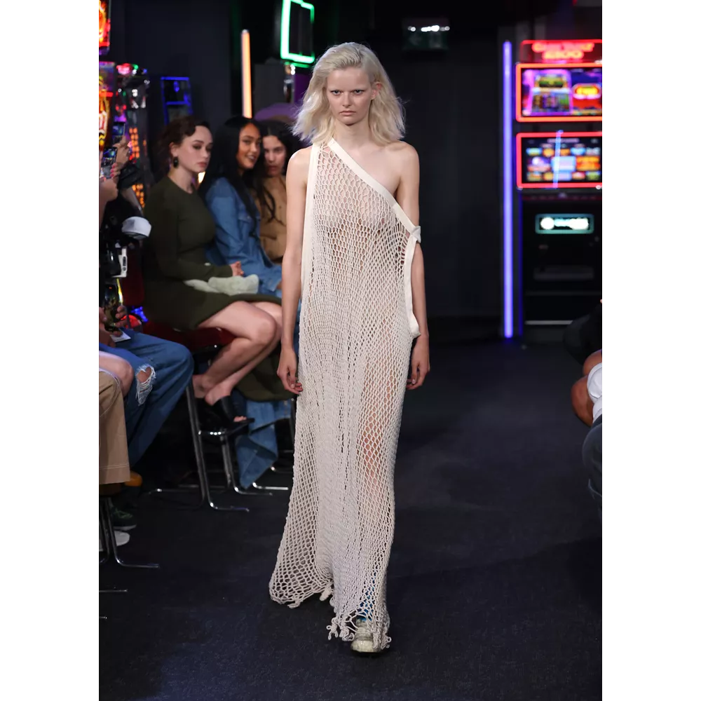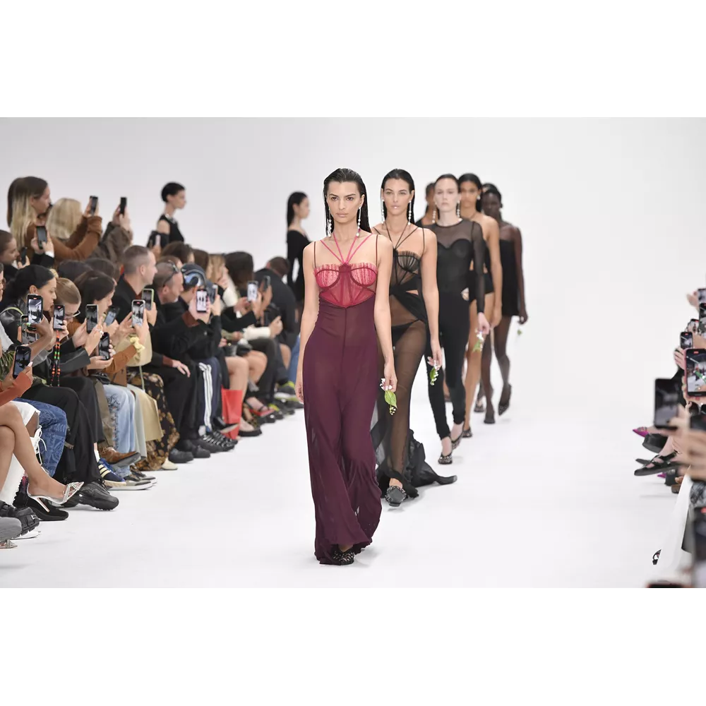 -Τον νεο-σουρεαλισμό του JW Anderson που για την SS'23 συλλογή αντλεί την έμπνευσή του, όπως δήλωσε ο ίδιος, από "το παράλληλο σύμπαν των ανθρώπων που είναι παγιδευμένοι στους υπολογιστές του" και δημιουργεί φορέματα - πληκτρολόγια, t-shirt dresses με logos από διάφορες γραμματοσειρές, ένα φόρεμα - μεταλλική σφαίρα και δυο που μιμούνται τις πλαστικές σακούλες μέσα στις οποίες μεταφέρονται τα χρυσόψαρα. Την ίδια στιγμή, στέλνει στην πασαρέλα ένα από τα πιο σέξι μοντέλα του πλανήτη, την Emily Ratajkowski, ντυμένη σχεδόν ...σεμνά, με μαύρο t-shirt και φαρδύ παντελόνι με σκισίματα. Bonus extravaganza, ο τρόπος που ο πολυτάλαντος Βρετανός σχεδιαστή συστήνει να φορέσουμε τα πουλόβερ: με την κρεμάστρα περασμένη στον λαιμό και τον γιακά- ζιβάγκο να κοιτάει προς τα κάτω!