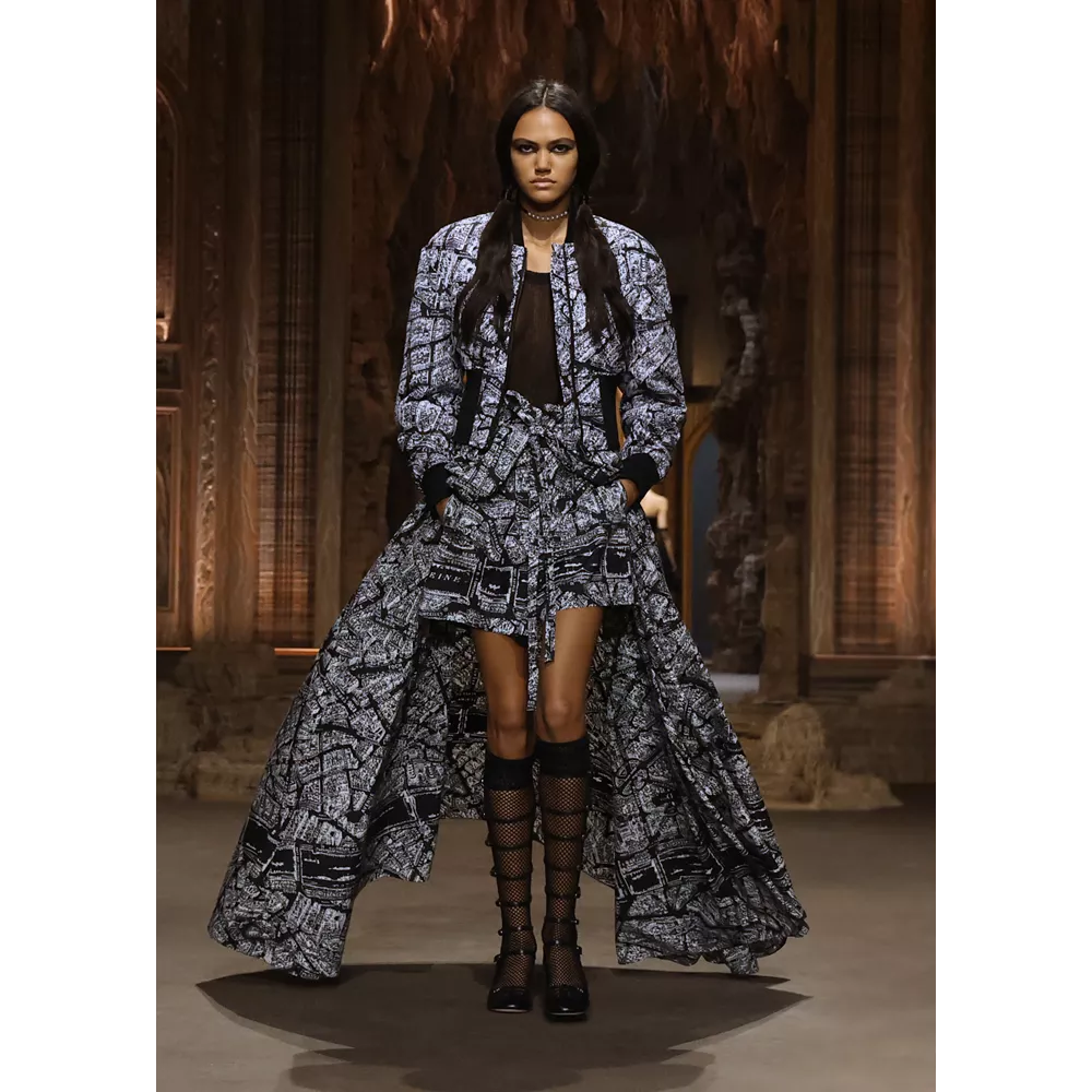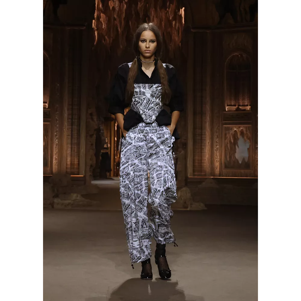 Ένα κυρίαρχο μοτίβο της συλλογής είναι αυτό που αντιγράφει έναν χάρτη του Παρισιού, και το οποίο η σχεδιάστρια αναβίωσε μέσα από τα αρχεία του οίκου, και συγκεκριμένα ένα μαντήλι Dior του 1950 μ' αυτό το τύπωμα. Ο χάρτης του Παρισιού γίνεται ένας νοητός καθοδηγητής της καθημερινής παριζιάνικης κομψότητας- εμφανίζεται πάνω σε καμπαρντίνες, τζάκετ, high low φούστες, cargo παντελόνια-, και συνυπάρχει μαζί με τις εντυπωσιακές δαντέλες και τα broderie anglaise, τους κορσέδες και τα bra top, τα bold φλοράλ μοτίβα πάνω σε μαύρα σύνολα, τα lingerie - inspired σετ με σορτς και ρόμπες, τις κλασικές καμπαρντίνες και τα καπιτόνε κομμάτια.