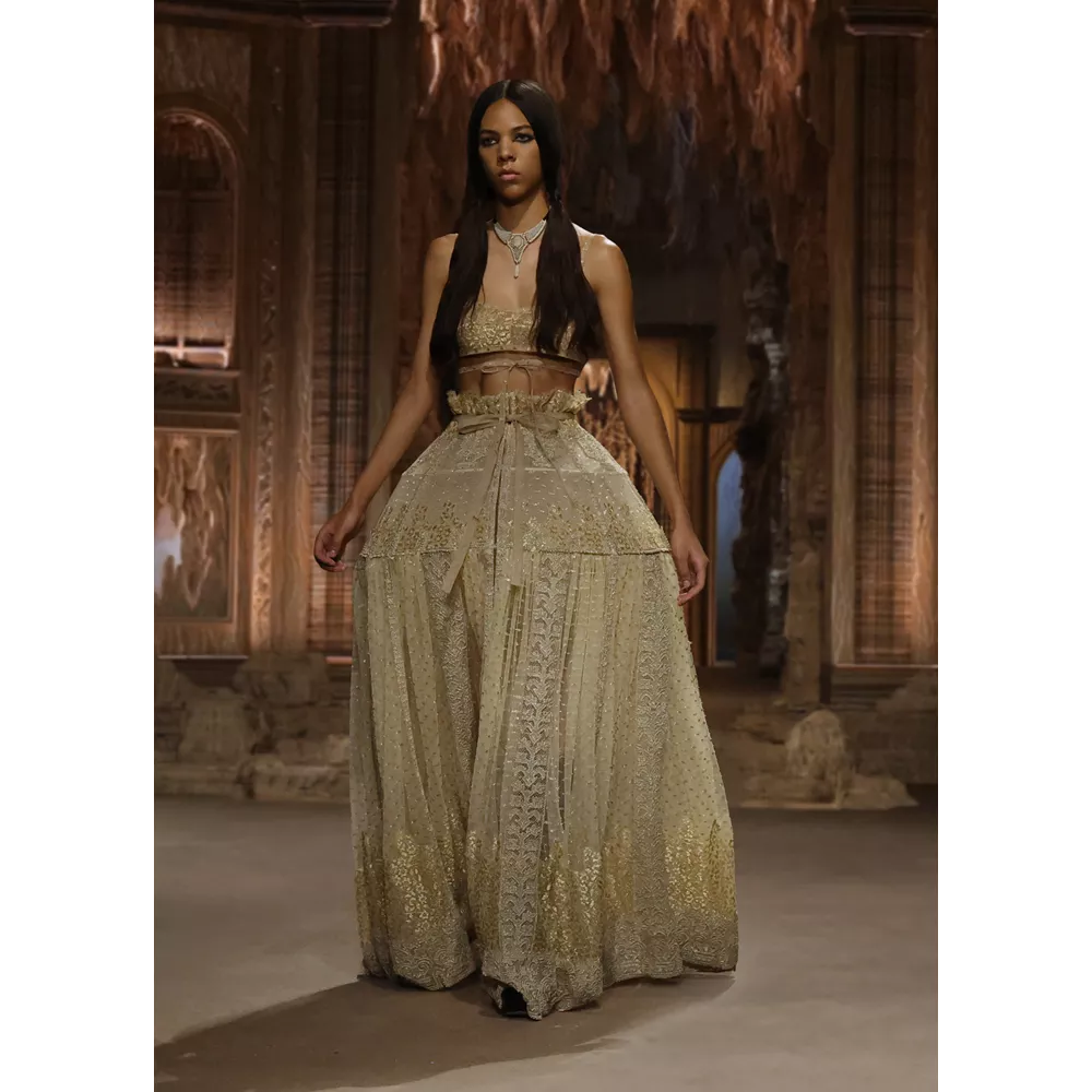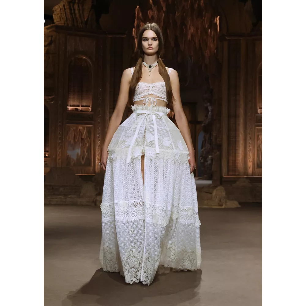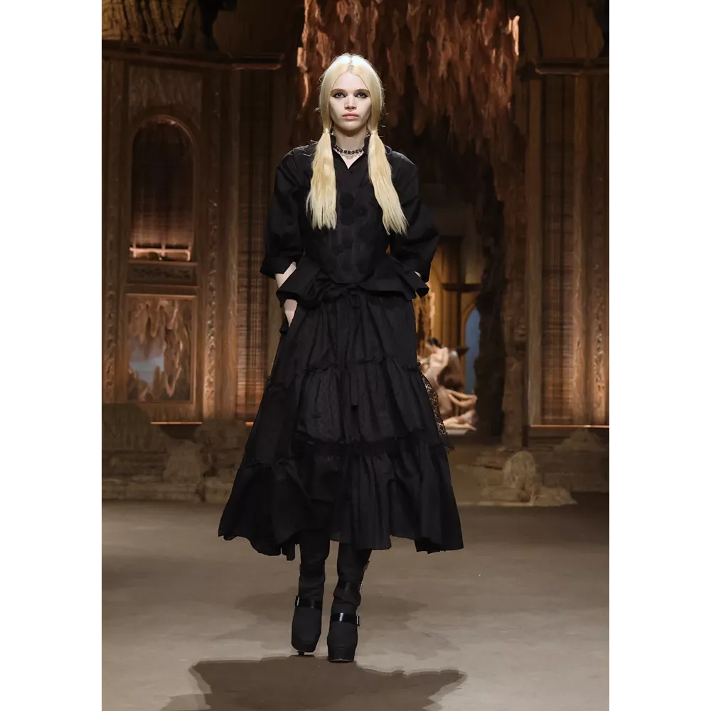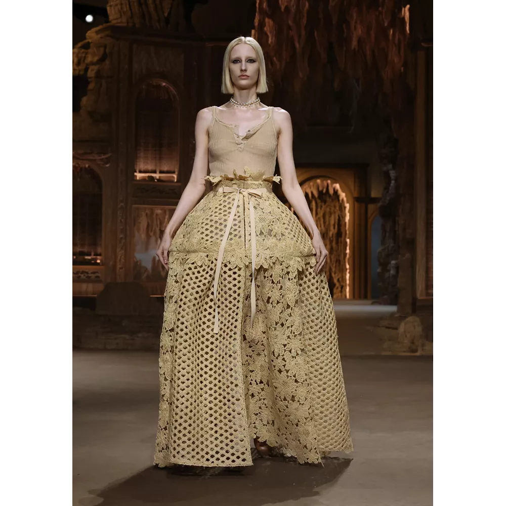 "Οι γυναίκες είναι ικανές να ασκήσουν εξουσία με διάφορους τρόπους, ακόμα και δραπετεύοντας με το μυαλό τους. Η δύναμη της μόδας γίνεται η δύναμη των γυναικών, ένα τρόπος αφύπνισης που οδηγεί σε μία έλξη του εξωτερικού κόσμου, σ' αυτά που βρίσκονται πέρα από την αντίληψη, γνώση και κοινή εμπειρία. Διάλογοι για τη μόδα με την πραγματικότητα μέσω τεχνασμάτων, τα ρούχα της Αυλής μεταμορφώνονται" αναφέρει το σημείωμα του οίκου Dior για τη νέα του A/K 2023 συλλογή και με την πρώτη ματιά αντιλαμβάνεται κανείς τις μοντέρνες μεταμορφώσει πάνω σ' ένα ενδυματολογικό στιλ που μετράει στην πλάτη του αιώνες.
