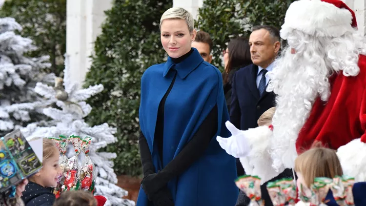 Η βασιλική οικογένεια του Μονακό, δηλαδή ο Πρίγκιπας Αλβέρτος με τη σύζυγό του Charlene και τα δυο τους παιδιά, την Πριγκίπισσα Gabriella και τον Πρίγκιπα Jacques, βρέθηκαν στην παραδοσιακή τελετή για τον στολισμό του Χριστουγεννιάτικου δέντρου στο Παλάτι. Για την περίσταση, η Πριγκίπισσα φόρεσε ένα cape-style κασμιρένιο παλτό σε navy blue απόχρωση πάνω από ένα πλεκτό σύνολο σε μαύρο χρώμα και μαύρες μπότες.