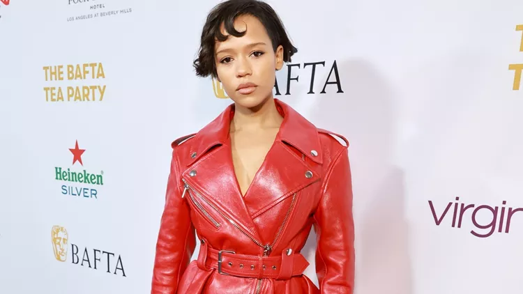 Δυο μέρες μετά, στις 14 Ιανουαρίου, στο tea party που διοργάνωσαν τα BAFTAs στο Λος Άντζελες, η ανερχόμενη Taylor Russell, που πρωταγωνιστεί με τον Timothée Chalamet στο Bones and All και έχει κλέψει φέτος τις εντυπώσεις στο κόκκινο χαλί, εμφανίστηκε φορώντας επίσης ένα δερμάτινο σύνολο σε bold κόκκινο χρώμα. Συγκεκριμένα, η ηθοποιός συνδύασε δερμάτινο peplum biker jacket και δερμάτινη μίντι φούστα με σκίσιμο από την pre-collection Φ/Χ 2023 του οίκου Alexander McQueen. Σε κόκκινο χρώμα ήταν τα υπόλοιπα κομμάτια με τα οποία ολοκλήρωσε το look της, δηλαδή τα Punk ankle strap πέδιλα και την The Jewelled hobo mini τσάντα του οίκου.