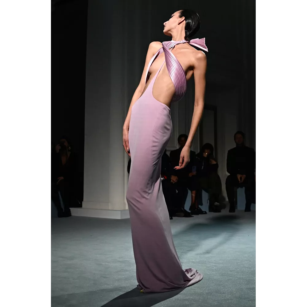 Το show με guest σχεδιαστή τον Haider Ackermann παρουσιάστηκε στα κεντρικά του οίκου JPG στο Παρίσι και η πασαρέλα που το φιλοξένησε στήθηκε έτσι ώστε να θυμίζει παλιό παριζιάνικο couture salon με τα μοντέλα να ενισχύουν στην αίσθηση αυτή με την επιτηδευμένη, σχεδόν θεατρική, κίνησή τους. Σε κεντρική θέση στο front row βρισκόταν, βεβαίως, ο Jean Paul Gaultier, ο πρωτοπόρος και αιρετικός της γαλλικής couture, που όταν ένιωσε ότι ήρθε η στιγμή να αποσυρθεί από τις συλλογές αποφάσισε να δώσει βήμα σε νέους ανερχόμενους, αλλά και παραγνωρισμένους (βλ. Ackermann) ταλαντούχους σχεδιαστές για να συνεχίσουν το όραμά του. Ή έστω, να κρατήσουν ζωντανό τον μύθο του εμβληματικού οίκου του.