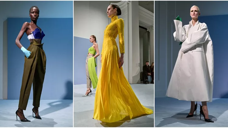 Ένα ντραπέ halter-neck φόρεμα μοιράζεται τη σιλουέτα του μ' ένα εσωτερικό catsuit, μία chic μαύρη ολόσωμη φόρμα διακρίνεται για τους άριστα στρογγυλεμένους ώμους της, ένα μάξι coatdress ξεχωρίζει για τα έξυπνα cutouts και την εσωτερική φόδρα την οποία φωτίζουν οι αποχρώσεις του lime και του τιρκουάζ. Επιπλέον, ένα μάξι πλισέ ανάλαφρο high neck φόρεμα σε φωτεινό κίτρινο έκανε την εμφάνισή του στην πασαρέλα πλάι πλάι μ' ένα σύνολο από tailored παντελόνι και πράσινο πλισέ bustier με ουρά, ενώ σε μία από τις πιο εκπληκτικές στιγμές της πασαρέλας ένα μοντέλο εμφανίζεται φορώντας παλτό φτιαγμένο από καρφίτσες – ως ένας φόρος τιμής στο πολύτιμο αυτό εργαλείο των ατελιέ.