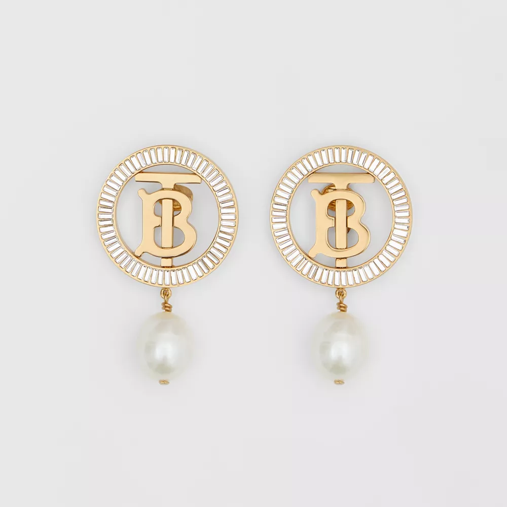 Σκουλαρίκια με πέρλες και χρυσό Monogram, Burberry.