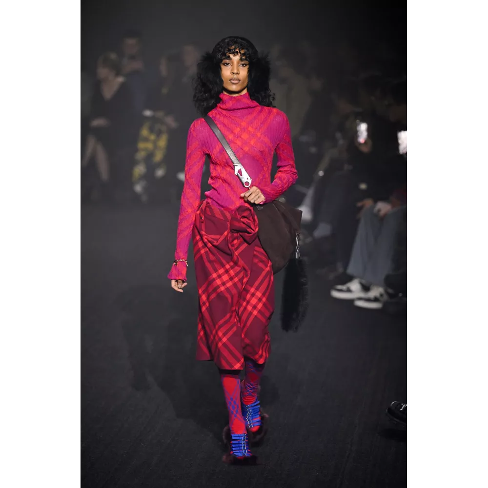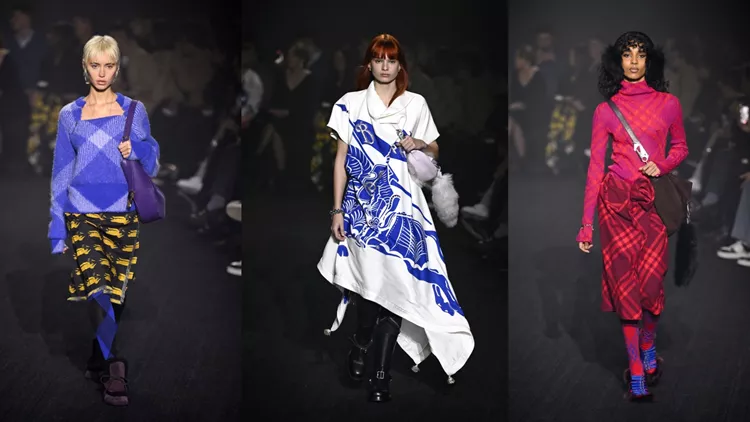 Και μίας και ο λόγος για βρετανική ψυχή, η "βρετανικότητα" ήταν πανταχού παρούσα σ' αυτή τη συλλογή μαζί με την κληρονομία και τους κώδικες του οίκου - όπως είναι τα καρό και o Έφιππος Ιππότης του Burberry (Equestrian Knight Design,), τον οποίο φρόντισε να επαναφέρει ως logo o νέος καλλιτεχνικός διευθυντής, αλλά και γενικά την ένδυση για εξωτερικές δραστηριότητες στην οποία εξειδικεύεται ο Burberry. Αδιάβροχα σε army -green, γαλότσες και hiking boots από faux γούνα, τσάντες με λαγοπόδαρα, καρό παντελόνια και kilt φούστες, γούνινα trapper hats, utilitarian jackets και cargo παντελόνια - διακοσμημένα μάλιστα με μοτίβο τριαντάφυλλο που παραπέμπει στο βρετανικό σύμβολο του english rose-, παλτό με πλουμιστή διακόσμηση από φτερά, blanket coats και μία σεβαστή ποικιλία από κομμάτια με το μοτίβο της αγριόπαπιας, δημιουργούν την αίσθηση μίας εξόρμησης στη βρετανική εξοχή, της διαρκούς απειλή για ξαφνική βροχή πάνω από το Λονδίνο και τα κυνήγια της Βασίλισσας Ελισάβετ στο εξοχικό κάστρο Balmoral. Όλα αυτά και τίποτα απ' όλα αυτά θα μπορούσαν να είναι στο μυαλό του Βρετανού Daniel Lee, που ξέρει όμως πως να επαναπροσδιορίζει τους κανόνες και να αποδίδει το ζητούμενο, εν προκειμένω την ηχηρή ανανέωση για τον οίκο Burberry.