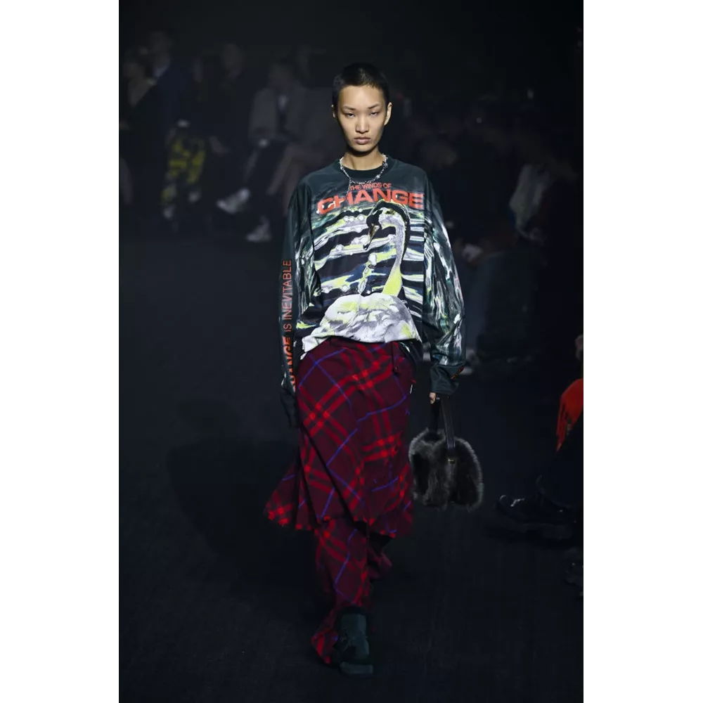 Η "νέα εποχή" - και οι νεώτερες κοινότητες καταναλωτών - στις οποίες ποντάρει ο οίκος -ναυαρχίδα του βρετανικού στιλ, ήταν ξεκάθαρο ζητούμενο ήδη από τη στιγμή που ανακοίνωσε την αντικατάσταση του Riccardo Tisci με τον Daniel Lee, τον σχεδιαστή που μεταμόρφωσε τον οίκο Bottega Veneta σε σημείο - αναφοράς της youthful και playful κομψότητας. Ο Lee, μάλιστα, μοιάζει να έχει πάρει τόσο σοβαρά αυτή την αλλαγή που φρόντισε να τη δηλώσει ξεκάθαρα και μέσα από την ίδια τη συλλογή: "The Winds of Change" είναι το κυρίαρχο slogan στα graphic t-shirts που αυτή φιλοξενεί και η συνύπαρξή του με το σχέδιο μίας αγριόπαπιας μας υπενθυμίζει κτο ιδιότυπο βρετανικό χιούμορ. Αν, επομένως, είναι να έρθει η αλλαγή στον οίκο - φαίνεται να μας λέει- αυτό θα συμβεί με τα "βρετανικά" είδη πτηνών, όπως η πρασινοκέφαλη αγριόπαπια που απεικονίζεται στις μπλούζες - και δεν θα μπορούσε να αποδώσει καλύτερα το πανκ συναίσθημα που κρύβεται στη ψυχή των Βρετανών.