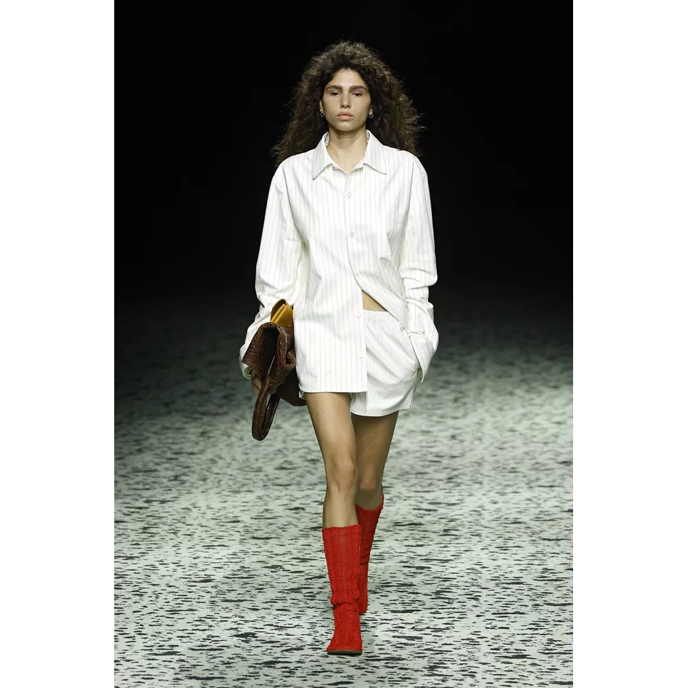 Αν η πρώτη συλλογή (AW'22) του Matthieu Blazy για την Bottega Veneta ήταν αυτή με την οποία έπρεπε να αιτιολογήσει την εμπιστοσύνη του οίκου και να σταθεί απέναντι στο σαρωτικό φαινόμενο που δημιούργησε ο Danie Lee, η δεύτερη (SS'23) ήταν εκείνη με την οποία όλοι βεβαιώθηκαν για το εξαιρετικό ταλέντο του νέου creative director και την εκ νέου δυναμική επανατοποθέτηση του brand στο γίγνεσθαι των σύγχρονων τάσεων και της επιδραστικής μόδας. Άλλωστε, μιλάμε για μία από τις συλλογές που συζητήθηκαν περισσότερο στην αμέσως προηγούμενη fashion week, του Σεπτεμβρίου 2022, δημιούργησε τάσεις (βλ. tank tops και flannel shirts) και συνέδραμαν σημαντικά στην προώθηση της low-key πολυτέλειας και κομψότητας.