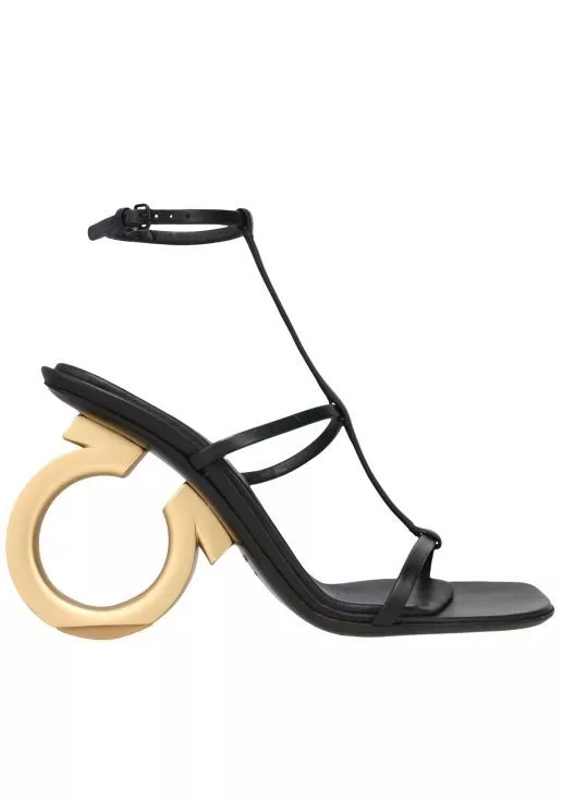 Δερμάτινα πέδιλα με sculptural τακούνι Ferragamo, Kalogirou.